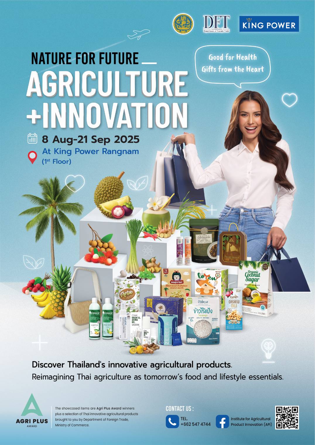 ร่วมเปิดโลกนวัตกรรมสินค้าเกษตรสุดล้ำ ทั้งสินค้าอาหารและไลฟ์สไตล์ จากโครงการ Agri Plus Award และ สินค้าจากผู้ประกอบการในเครือข่ายของกรมการค้าต่างประเทศ กว่า 60 รายการ ที่ดีต่อสุขภาพ ดีต่อใจ และดีต่อโลก! ที่เราคัดสรรมาให้ช้อปกันอย่างจุใจ!