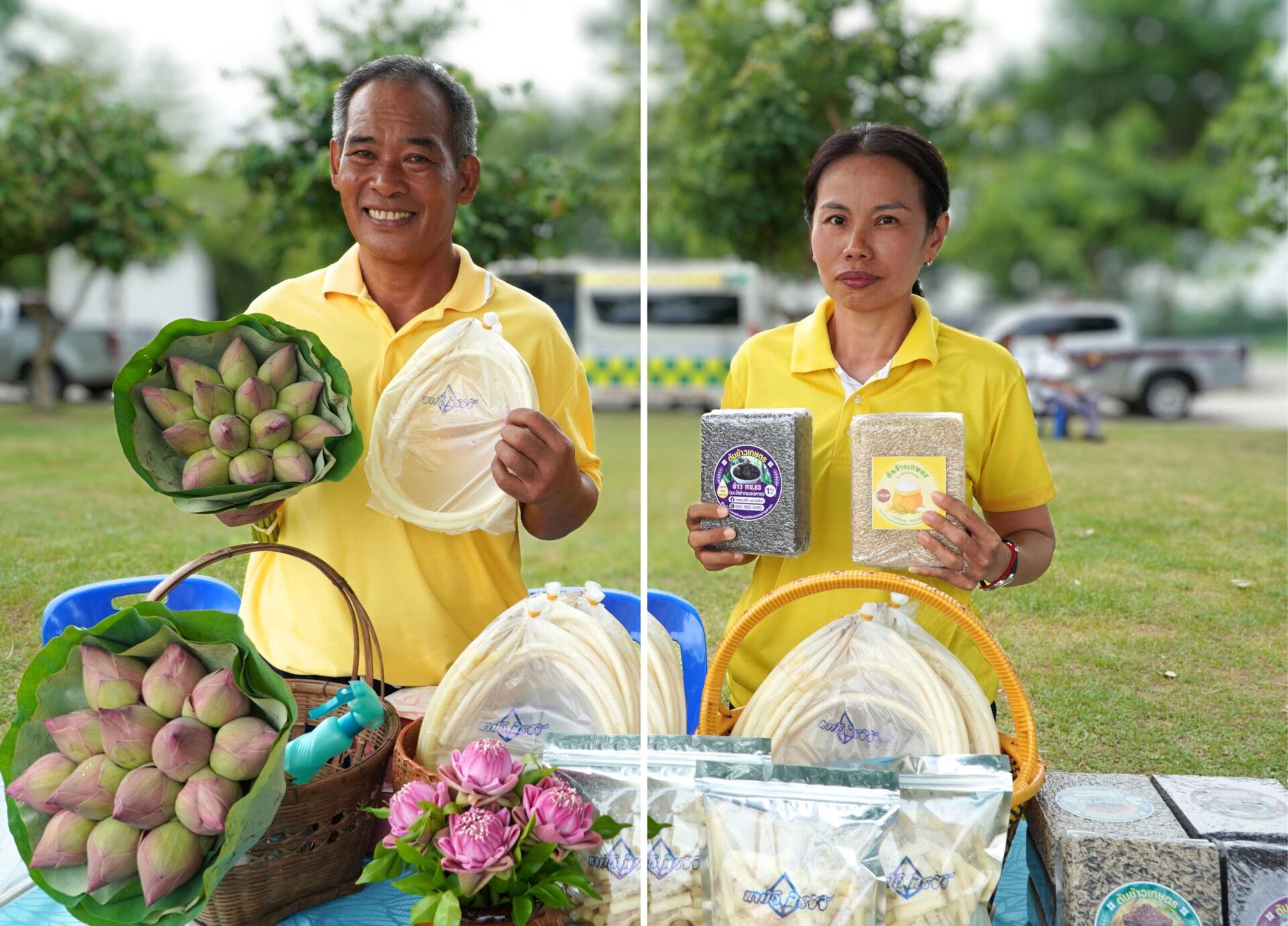 “แต่พอมีประตูระบายน้ำแม่น้ำยมซึ่งเป็นพระราชดำริพระบาทสมเด็จพระบรมชนกาธิเบศร มหาภูมิพลอดุลยเดชมหาราช บรมนาถบพิตร ทุกอย่างเปลี่ยนไป น้ำไม่ขาด ไม่ท่วม เก็บกักไว้ใช้ได้ทั้งปี ผมเลยหันมาทำนาบัว ปลูกบัวหลวง หรือ ปทุมชาติ เก็บไหลบัวและฝักขาย ส่วนหนึ่งปลูกบัวฉัตรขาวและฉัตรชมพูที่ใช้สำหรับบูชาพระ เก็บดอกส่งขายตลาดในสุโขทัยและจังหวัดใกล้เคียง พอกิน พอขาย รายได้ดี เลี้ยงครอบครัวได้อย่างมั่นคง” เขากล่าวด้วยแววตาเปี่ยมด้วยความภาคภูมิใจว่า ที่นี่สามารถควบคุมน้ำได้ ทำให้เขาปลูกพืชได้ตลอดปีไม่เว้นแม้แต่ฤดูแล้ง และสิ่งสำคัญที่สุดคือ ชีวิตมีความมั่นคงขึ้นมากจากการประกอบอาชีพที่พึ่งพาน้ำได้อย่างยั่งยืน