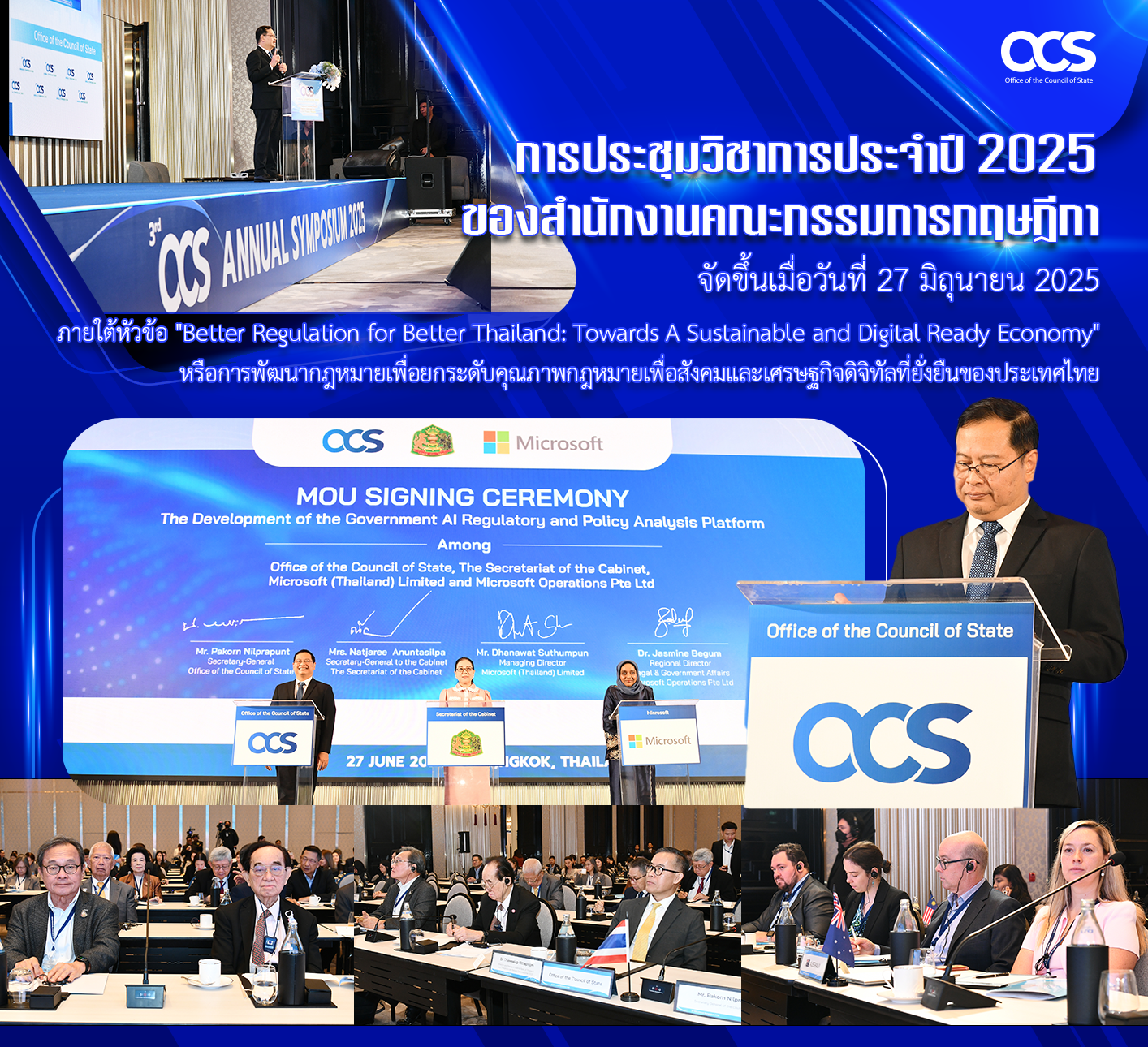 การประชุมวิชาการประจำปี 2025 ของสำนักงานคณะกรรมการกฤษฎีกา จัดขึ้นเมื่อวันที่ 27 มิถุนายน 2025 ภายใต้หัวข้อ "Better Regulation for Better Thailand: Towards A Sustainable and Digital Ready Economy" หรือการพัฒนากฎหมายเพื่อยกระดับคุณภาพกฎหมายเพื่อสังคมและเศรษฐกิจดิจิทัลที่ยั่งยืนของประเทศไทย