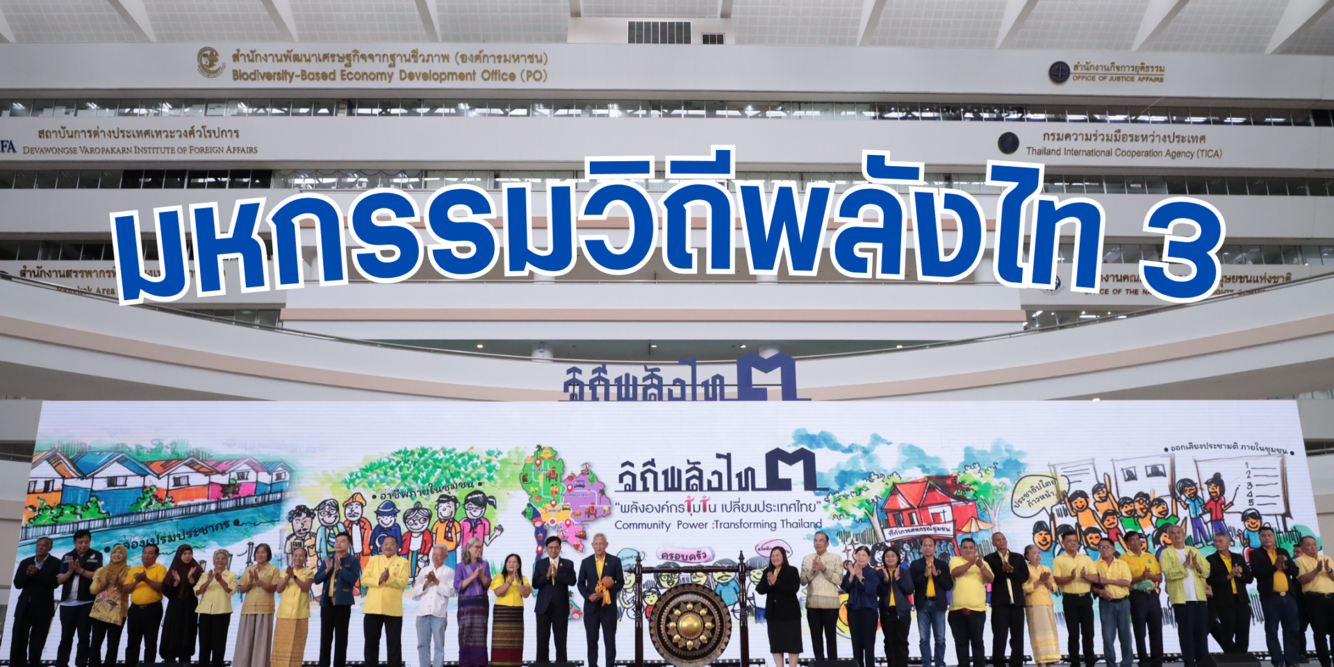 มหกรรมวิถีพลังไท 3 “พลังองค์กรชุมชน เปลี่ยนประเทศไทย สำหรับประชาชนและผู้สนใจที่ต้องการเรียนรู้ แลกเปลี่ยน และเป็นส่วนหนึ่งของการเปลี่ยนแปลงประเทศไทย สามารถร่วมงานได้ต่อเนื่อง ถึงวันที่ 1 สิงหาคม 2568 ณ อาคารรัฐประศาสนภักดี (อาคาร B) ศูนย์ราชการเฉลิมพระเกียรติฯ ถนนแจ้งวัฒนะ