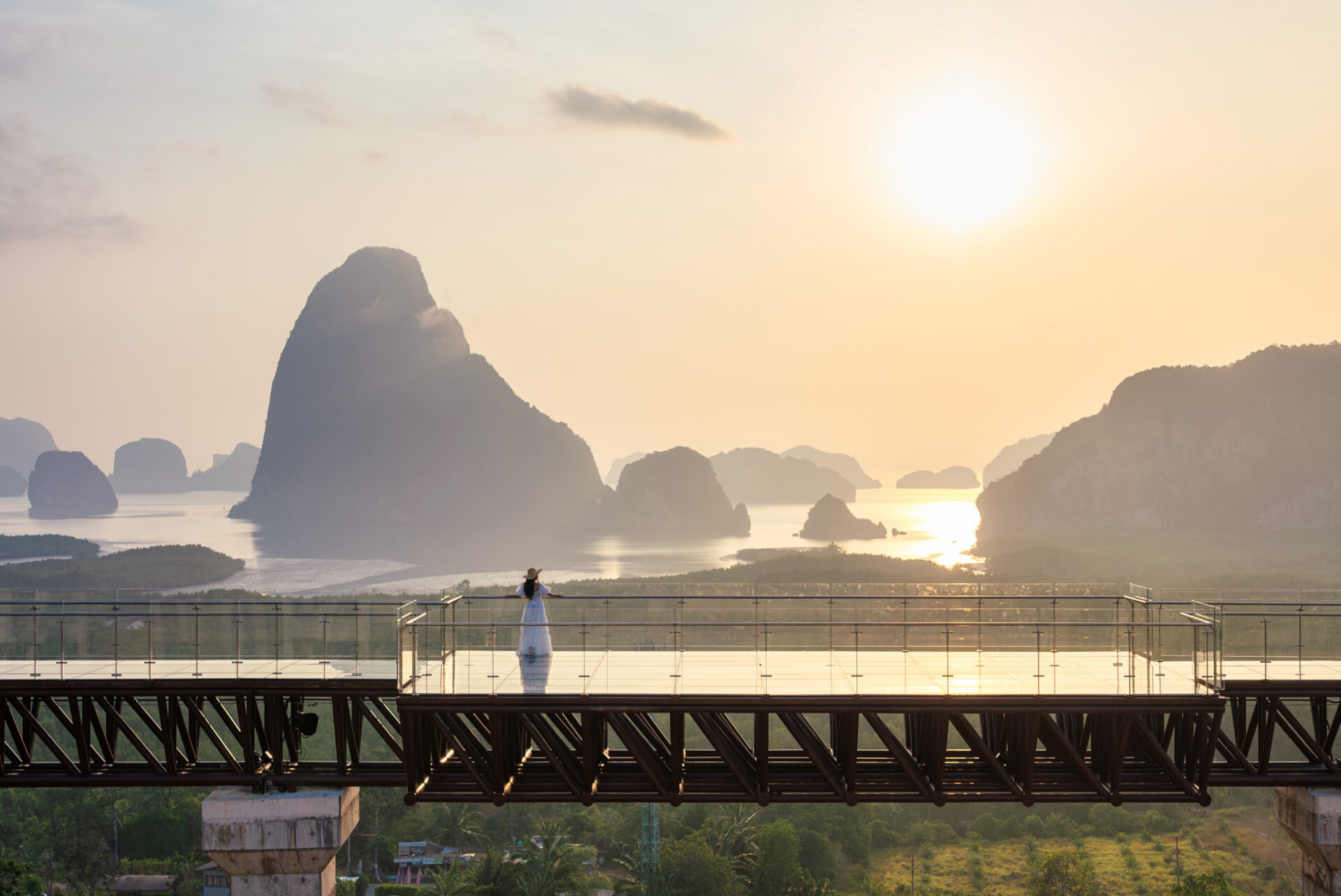 แลนด์มาร์คแห่งใหม่บนยอดเขาสเม็ดนางชี ทางเดินกระจกใสที่ยื่นออกจากหน้าผา ให้คุณได้สัมผัสประสบการณ์ความสูงเหนือระดับน้ำทะเลกว่า 80 เมตร พร้อมชมวิวแบบพาโนรามา 360 องศา ครอบคลุมทั้งแนวป่าชายเลน ทะเลอันดามัน หมู่เกาะหินปูน