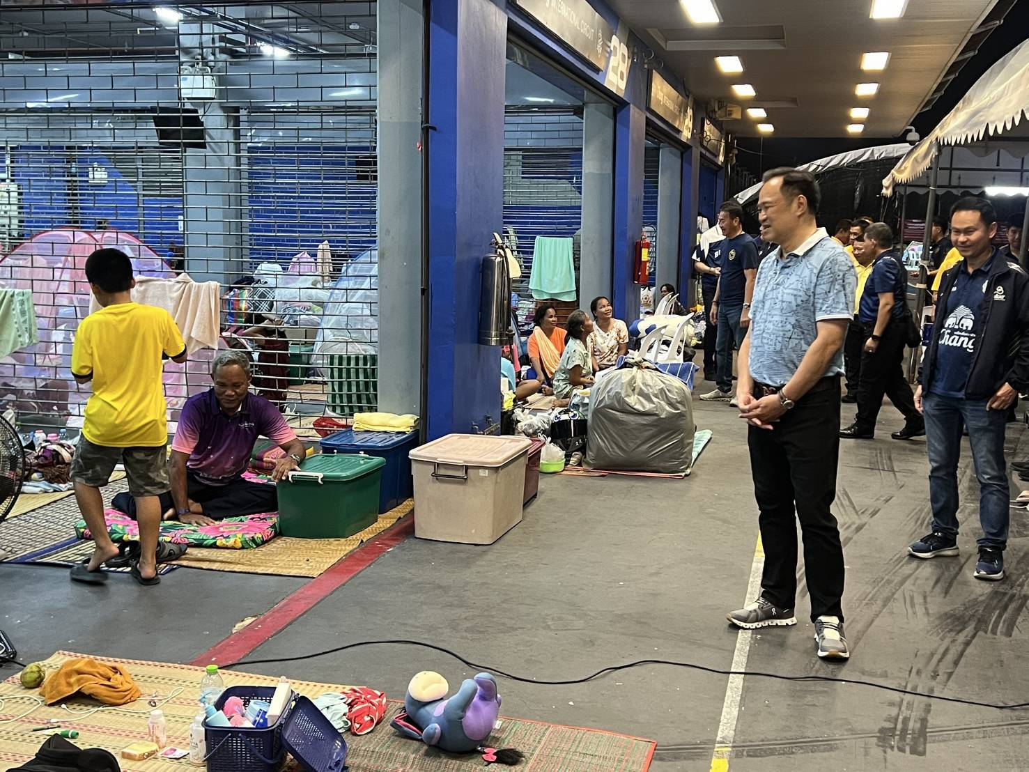 ภายในศูนย์พักพิง นายอนุทินได้พูดคุยสอบถามสภาพความเป็นอยู่ของผู้ประสบภัย พร้อมรับฟังปัญหาและข้อเสนอแนะเพื่อเร่งประสานหน่วยงานที่เกี่ยวข้องให้ความช่วยเหลืออย่างทันท่วงที