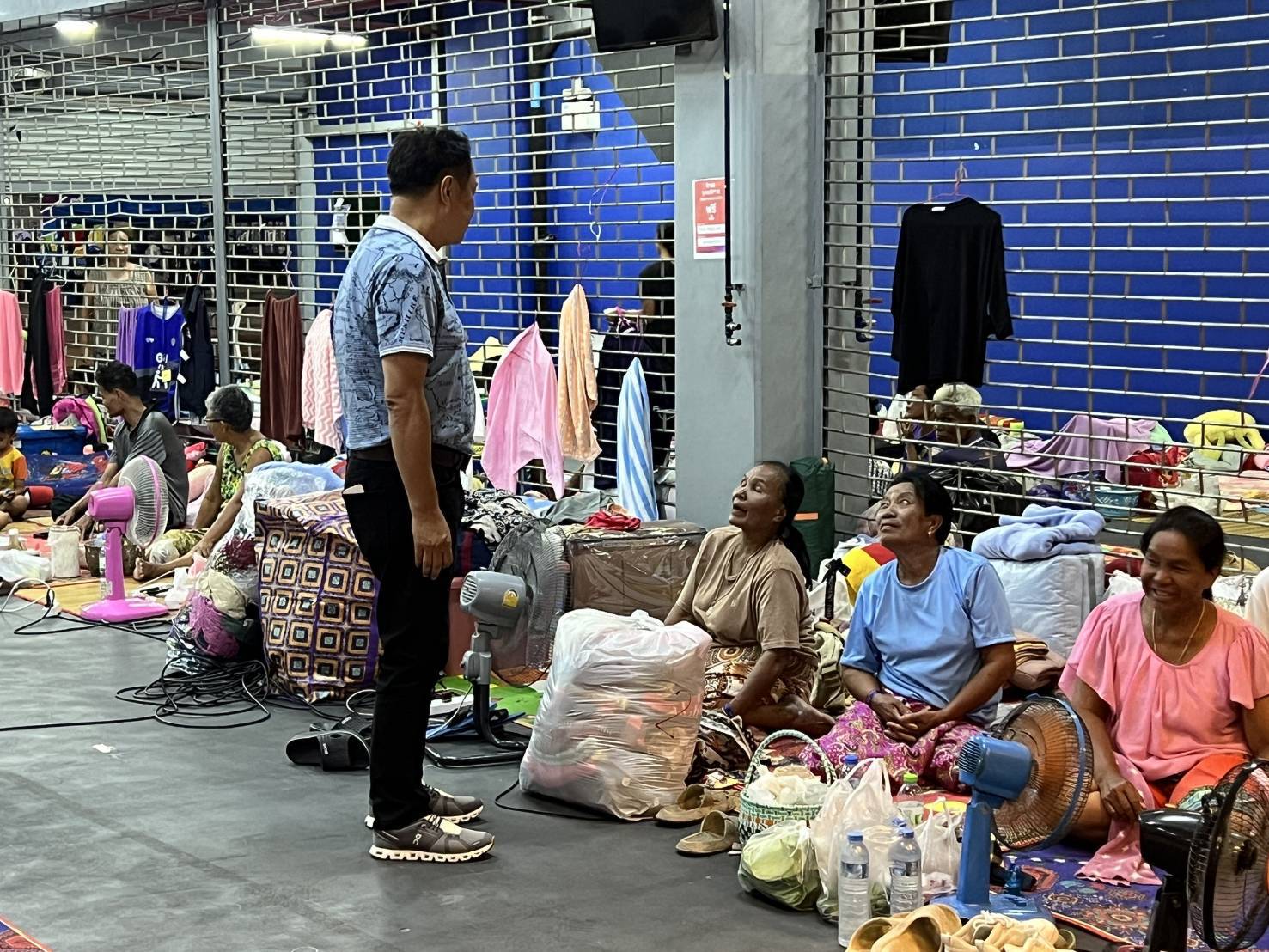 ภายในศูนย์พักพิง นายอนุทินได้พูดคุยสอบถามสภาพความเป็นอยู่ของผู้ประสบภัย พร้อมรับฟังปัญหาและข้อเสนอแนะเพื่อเร่งประสานหน่วยงานที่เกี่ยวข้องให้ความช่วยเหลืออย่างทันท่วงที