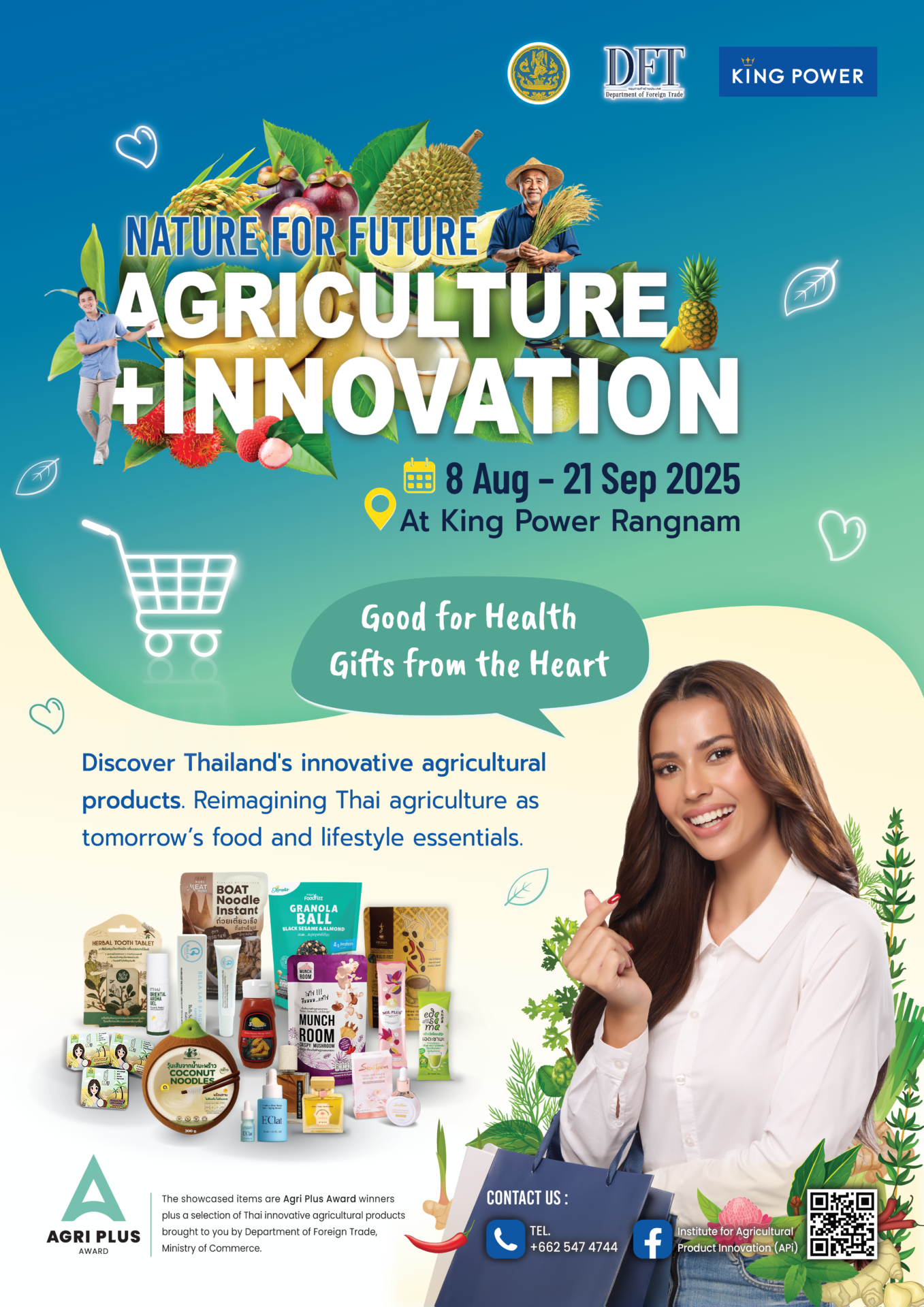 Pop-up Counter “Nature for Future: Agriculture + Innovation” เปิดให้ประชาชนและนักท่องเที่ยวนานาชาติ เข้าชม ชิม ช้อป ใช้ และร่วมภาคภูมิใจกับสินค้าเกษตรนวัตกรรมไทย พร้อมร่วมสนุก เพื่อลุ้นรับของที่ระลึกและคูปอง ส่วนลดสุดพิเศษได้ที่คิง เพาเวอร์ รางน้ำ ตั้งแต่วันที่ 8 สิงหาคม ไปจนถึงวันที่ 21 กันยายน 2568