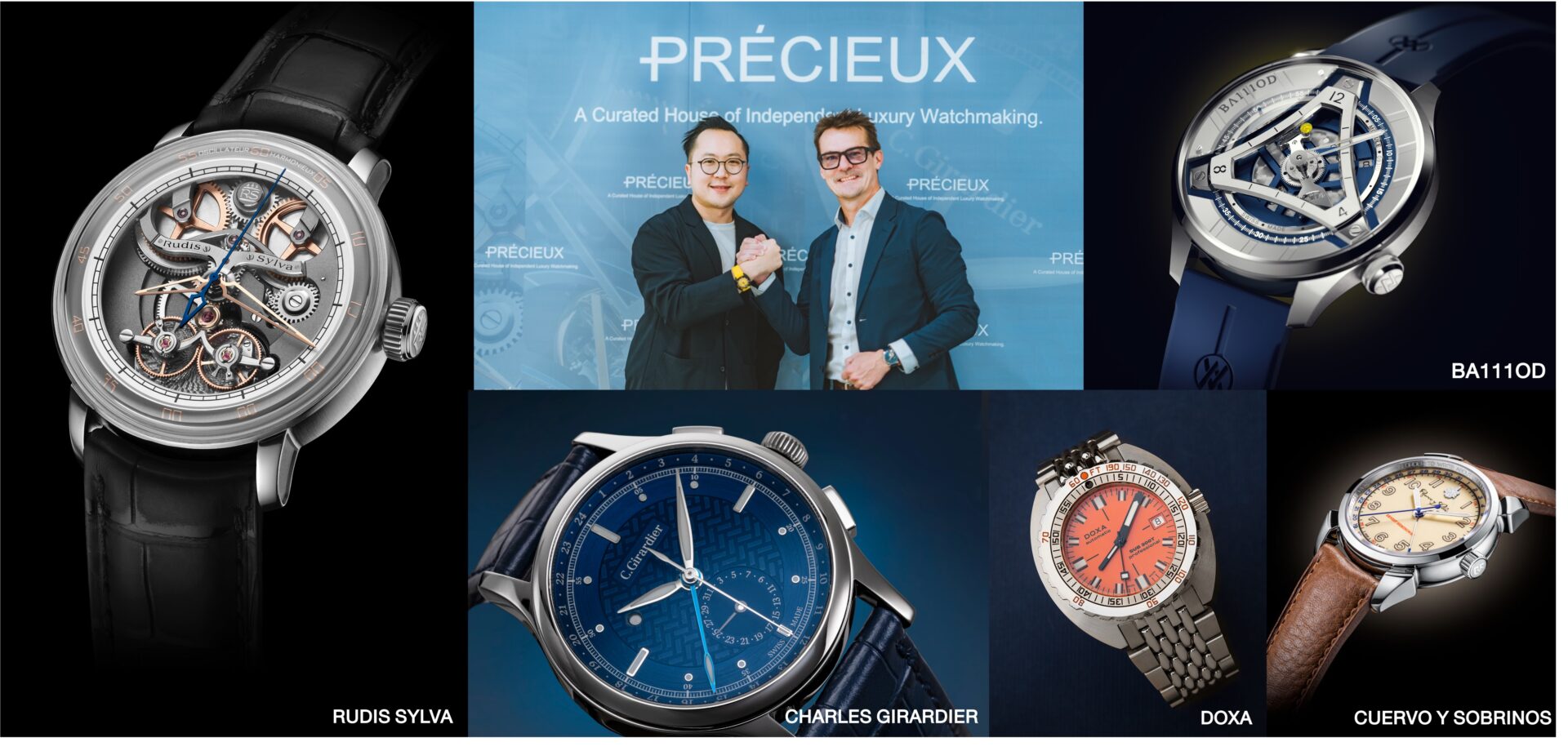 และสำหรับงานเปิดตัวครั้งแรกนี้ ทาง PRÉCIEUX ได้นำแบรนด์นาฬิกาอิสระคุณภาพระดับสูงทั้ง 5 แบรนด์ อย่าง RUDIS SYLVA (รูดิส ซิลวา), CHARLES GIRARDIER (ชาร์ลส์ จีราเดียร์), CUERVO Y SOBRINOS (คูร์เอโว อี โซบรีโนส), BA111OD (บาโย) และ DOXA (ด็อกซ่า) ถือได้ว่าเป็นสีสันใหม่ในวงการนักสะสมนาฬิกาของเมืองไทยจากการให้ความสนใจในแต่ละแบรนด์เป็นอย่างมากของแขกผู้เข้าร่วมงานในวันนั้น และในอนาคตก็เชื่อว่าทาง PRÉCIEUX ก็พร้อมที่จะนำแบรนด์ใหม่ๆ เข้ามานำเสนอให้เราได้ชมและรู้จักกันอีกเรื่อยๆ อย่างแน่นอน