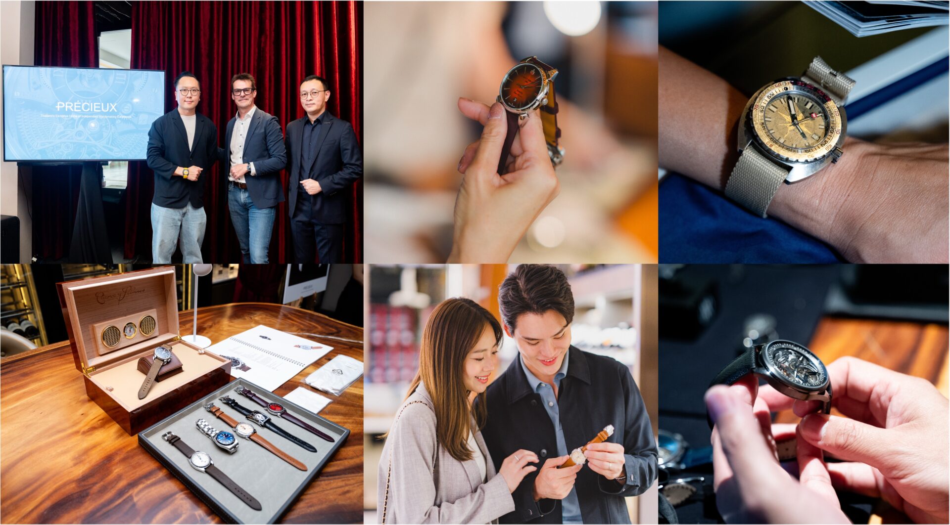 เปิดตัวอย่างเป็นทางการแล้วในประเทศไทย สำหรับตัวแทนจำหน่ายนาฬิกาแบรนด์อิสระในนาม PRÉCIEUX เมื่อปลายเดือน กรกฏาคม 2568 ที่ผ่านมา ณ ร้าน Riedel Wine Bar & Cellar เกษรวิลเลจ โดยมี Mr. Marcel Gut ผู้ก่อตั้ง PRÉCIEUX (SWISS) และ CEO ของ PRÉCIEUX (THAILAND) พร้อมกับ คุณรวิศ เหตานุรักษ์ COO PRÉCIEUX (THAILAND) ร่วมให้การต้อนรับบรรดาแขกผู้มีเกียรติ และคณะสื่อมวลชนภายในงาน ซึ่งได้รับความสนใจจากกลุ่มนักสะสมนาฬิกาและสื่อมวลชนทางด้านนาฬิกาเป็นอย่างมาก โดยการจัดงานได้รับเกียรติจาก ดร.ปราโมทย์ เหรียญเจริญสุข มาเป็นพิธีกรดำเนินงาน และกล่าวเชิญ Mr. Marcel Gut ขึ้นกล่าวเปิดงานพร้อมกับคุณรวิศ และเข้าร่วมพูดคุยถึงวัตถุประสงค์ในการจัดงานครั้งนี้