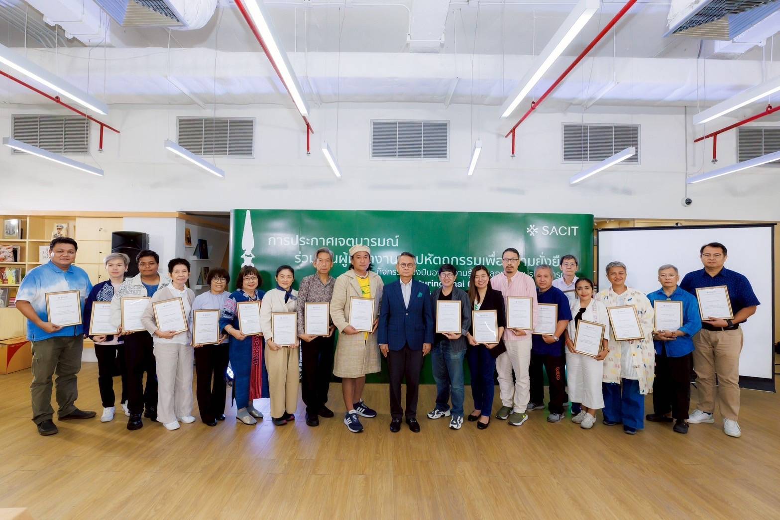ผศ.ดร.อนุชา ทีรคานนท์ ผู้อำนวยการสถาบันส่งเสริมศิลปหัตถกรรมไทย (องค์การมหาชน) หรือ SACIT เป็นประธานมอบ “ใบประกาศเจตนารมณ์การร่วมเป็นผู้ผลิตงานศิลปหัตถกรรมอย่างยั่งยืน” แก่ผู้ผลิตงานศิลปหัตถกรรมที่ได้รับการคัดเลือกจำนวน 20 ราย เข้าร่วมกิจกรรมแบ่งปันองค์ความรู้การนำแนวคิด ESG มาใช้ในการผลิตผลงานศิลปหัตถกรรม “การพัฒนาอย่างยั่งยืนตามแนวคิด ESG” ณ ห้องสมุดบรรณศิลปาคาร ชั้น 1 อาคารพระมิ่งมงคล โดยผู้ผ่านการคัดเลือกทั้ง 20 ราย ได้นำเสนอแนวทางการปรับใช้ ESG Business Canvas ในกระบวนการผลิตผลงานศิลปหัตถกรรมของตนต่อคณะกรรมการ โดยการคัดเลือกได้รับเกียรติจากคณะกรรมการผู้ทรงคุณวุฒิซึ่งมีความเชี่ยวชาญในด้านศิลปหัตถกรรม เศรษฐกิจสร้างสรรค์ และการพัฒนาอย่างยั่งยืน ได้แก่