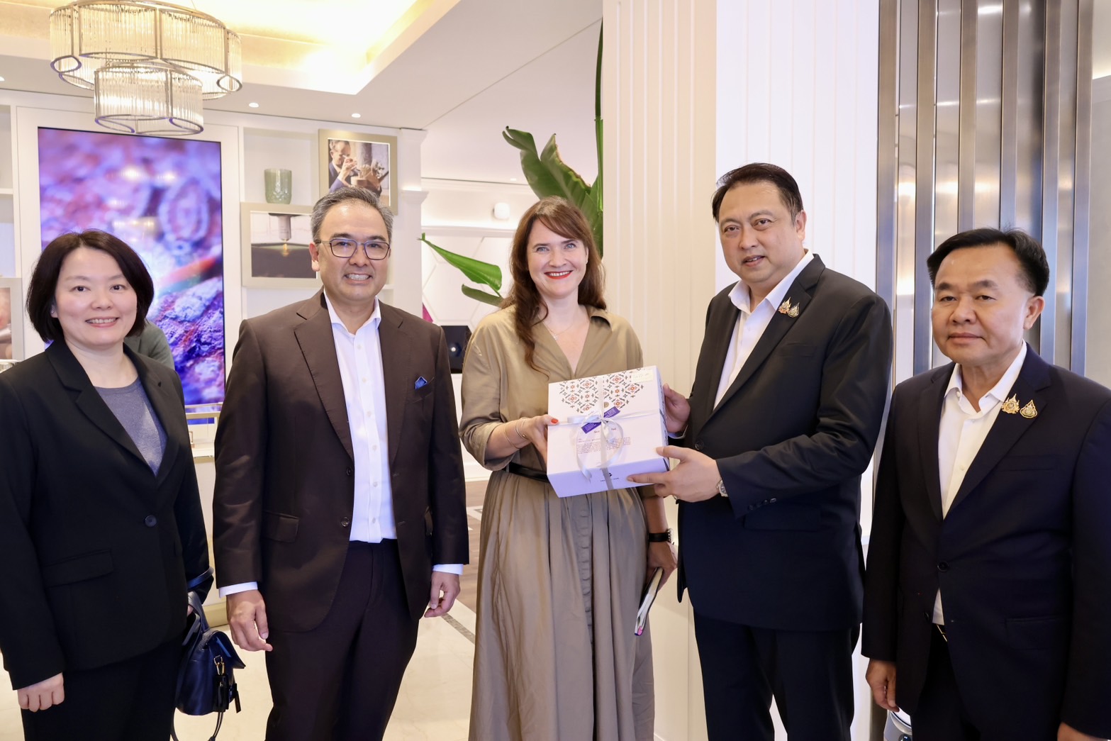 ได้นำคณะหารือกับ Ms. Bettina Börner, Senior Director Jewellery Product Development & Production และ Mr. Clément Mercier,Boutique Manager ของ Gübelin ซึ่งเป็นธุรกิจครอบครัวสวิสก่อตั้งตั้งแต่ปี 1854 มีชื่อเสียงในฐานะ “House of Gübelin” ครอบคลุมธุรกิจร้านเครื่องประดับ นาฬิกา และสถาบันอัญมณีศาสตร์ Gübelin Gem Lab ซึ่งมีศูนย์ตรวจสอบอัญมณีในหลายประเทศ รวมถึงกรุงเทพฯ