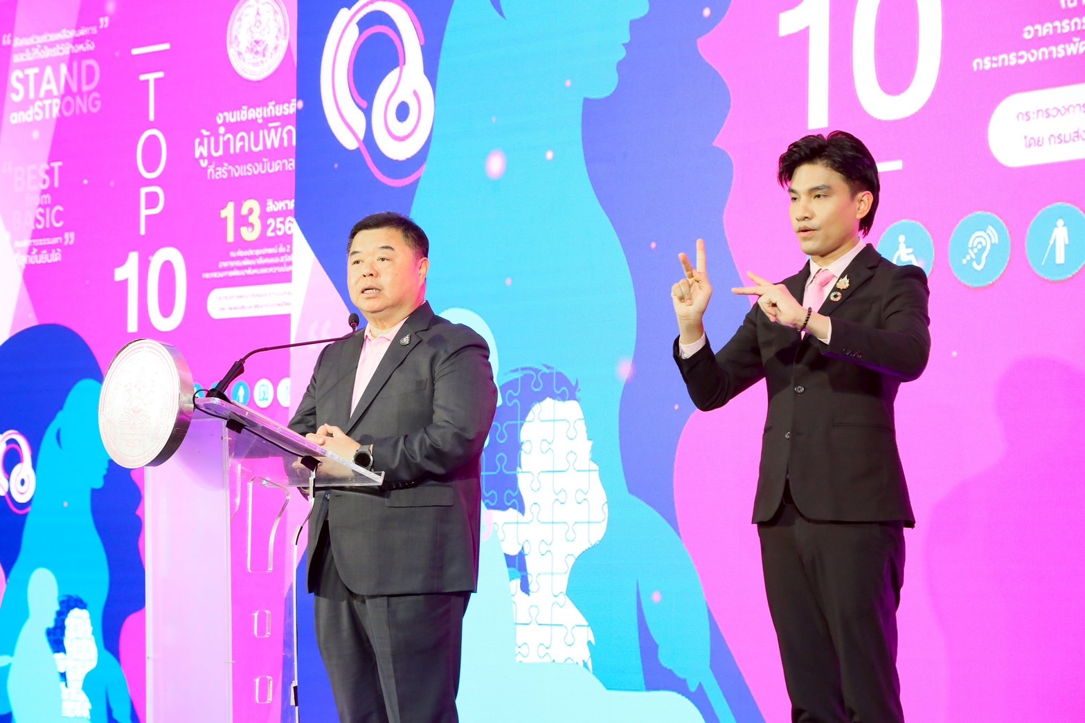 วันนี้จึงได้จัดงาน “เชิดชูเกียรติผู้นำคนพิการที่สร้างแรงบันดาลใจ TOP 10” เป็นส่วนหนึ่งของการดำเนินงาน ภายใต้โครงการผู้นำคนพิการที่สร้างแรงบันดาลใจ "Top 10" เพื่อยกย่องเชิดชูเกียรติแบบอย่างของความสำเร็จว่า “คนพิการทำได้” ด้วยความสามารถและศักยภาพของคนพิการบนเส้นทางของการก้าวข้ามความพิการสู่ความสำเร็จและมีส่วนร่วมตอบแทนสังคม ซึ่งจะสร้างความคิดและความเข้าใจในการอยู่ร่วมกันของคนพิการ บุคคลทั่วไป และสังคมที่มีต่อคนพิการและความพิการ เป็นการสร้างแรงบันดาลใจให้คนพิการและบุคคลทั่วไปร่วมกันสร้างสังคมแห่งโอกาส โดยไม่ทิ้งใครไว้ข้างหลัง และตระหนักถึงพลังของคนพิการในการเป็นกำลังสำคัญในการพัฒนาประเทศ
