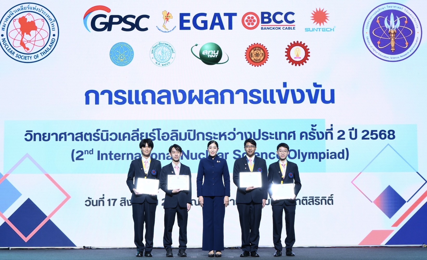 อีกหนึ่งกิจกรรมสำคัญในงานคือ พิธีมอบเหรียญรางวัลจากการแข่งขันวิทยาศาสตร์นิวเคลียร์โอลิมปิกระหว่างประเทศ (International Nuclear Science Olympiad) ซึ่งจัดขึ้นเพื่อยกย่องและเชิดชูความสามารถของนักเรียนและนักศึกษาที่มีศักยภาพสูงในด้านวิทยาศาสตร์นิวเคลียร์ จากหลายประเทศทั่วโลก โดยในพิธีนี้ นางสาวพลอย ธนิกุล ผู้ช่วยรัฐมนตรีว่าการกระทรวงการอุดมศึกษา วิทยาศาสตร์ วิจัยและนวัตกรรม (อว.) เป็นประธานมอบเหรียญรางวัล พร้อมกล่าวแสดงความยินดีและชื่นชมความพยายามของผู้เข้าร่วมการแข่งขัน ตลอดจนเน้นย้ำถึงความสำคัญของการพัฒนาทรัพยากรมนุษย์ด้านวิทยาศาสตร์ เทคโนโลยี และนวัตกรรม เพื่อสร้างความเป็นเลิศทางวิชาการ และสนับสนุนการพัฒนาประเทศสู่อนาคตที่ยั่งยืน