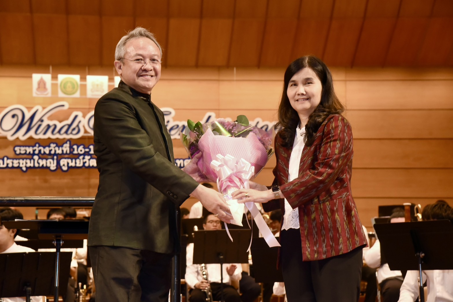 ช่วงท้ายของการแสดงได้รับเกียรติจาก นางยุถิกา อิศรางกูร ณ อยุธยา มอบช่อดอกไม้ให้แก่ดร.นิพัต กาญจนหุต วาทยกร Professor Ricky Badua วาทยกรรับเชิญจากสหรัฐอเมริกา นายจิณณวัตร มั่นทรัพย์ ผู้เชี่ยวชาญเครื่องดนตรีทูบา นายรุ่งรดิศ จันทร์จ าปา ผู้เชี่ยวชาญเครื่องดนตรียูโฟเนียม/ผู้จัดการวง และนายสุมมัส พุทธา ตัวแทนสมาชิกวงดุริยางค์เครื่องลมเยาวชนไทย พร้อมทั้งถ่ายภาพร่วมกันก่อนจบการแสดงดังกล่าว