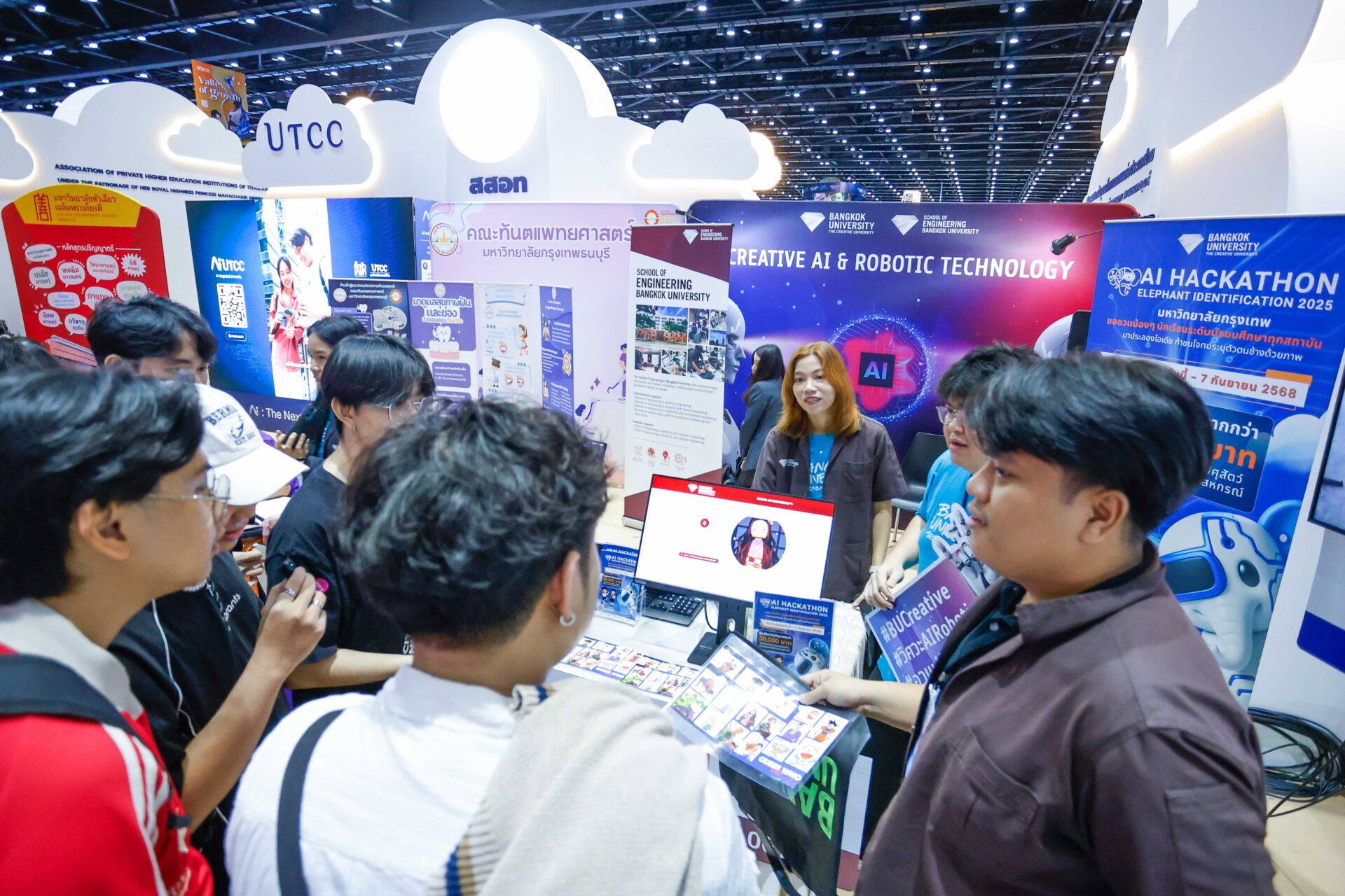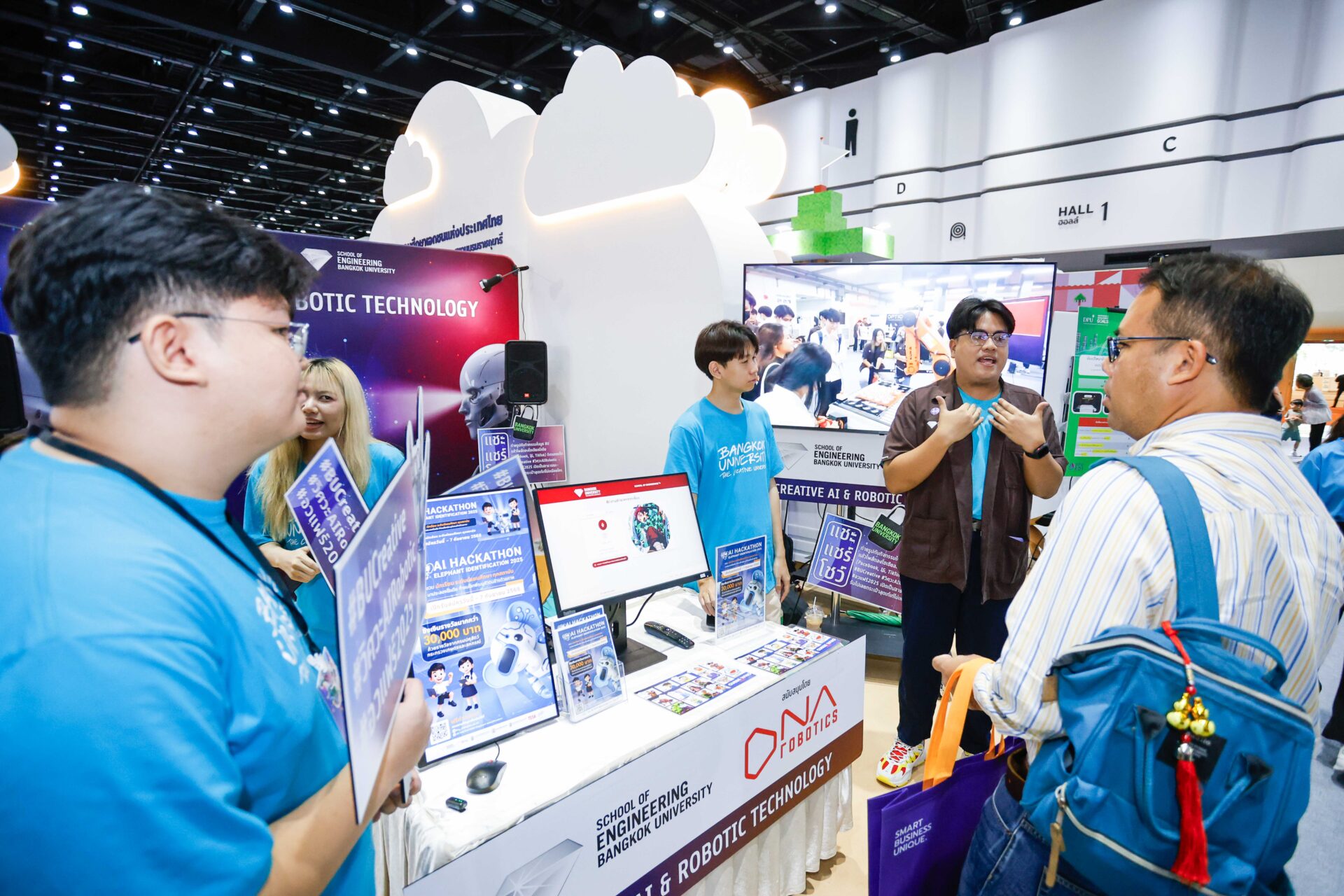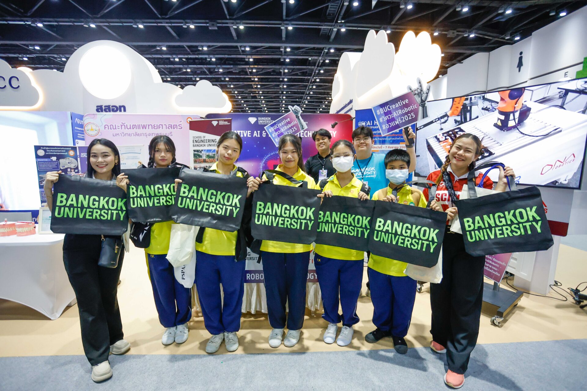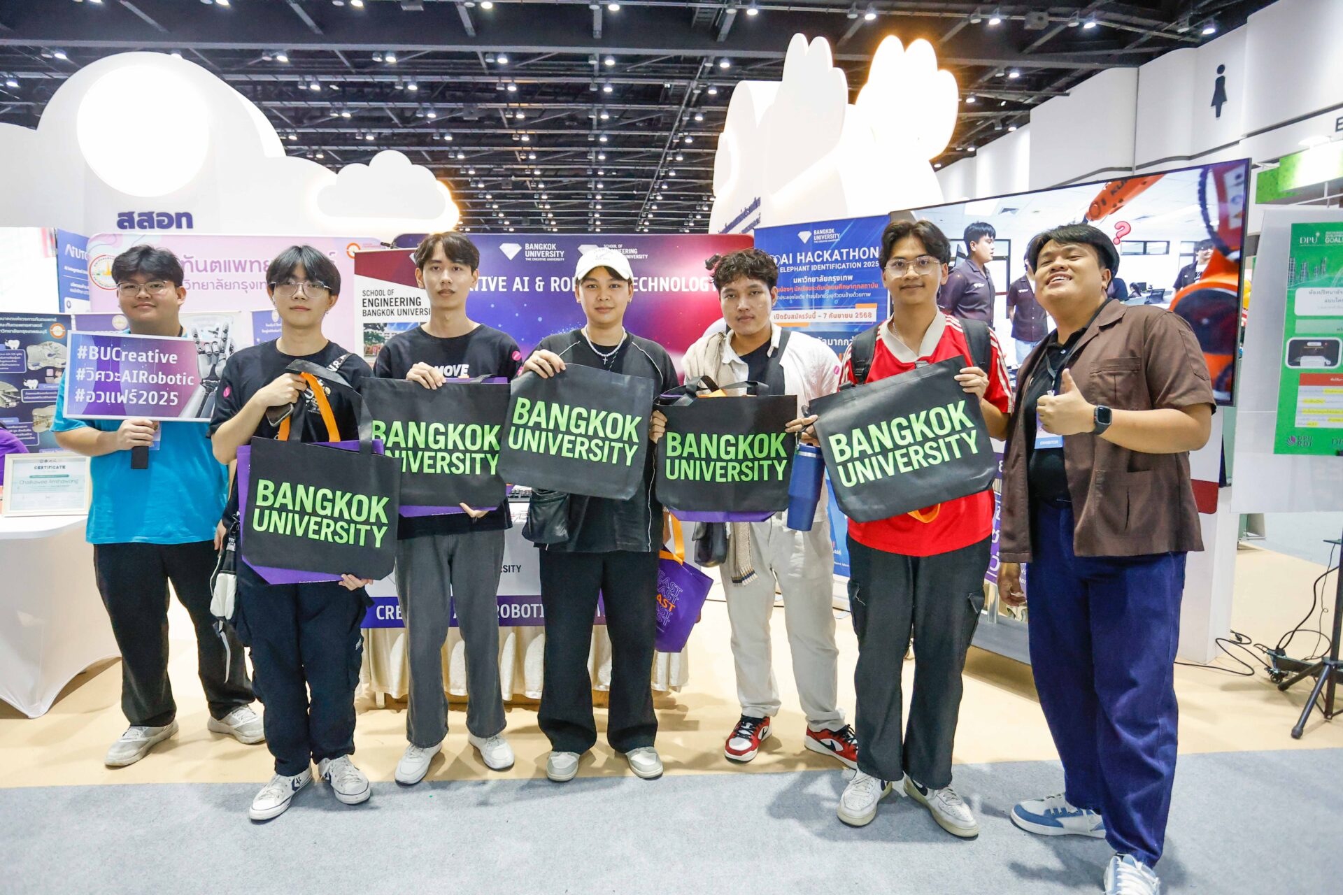 มหาวิทยาลัยกรุงเทพ ขับเคลื่อนสู่แนวหน้าการศึกษาและนวัตกรรม ด้วยการเข้าร่วมงาน อว.Fair 2025 SCI POWER FOR FUTURE THAILAND งานมหกรรมวิทยาศาสตร์และนวัตกรรมที่ยิ่งใหญ่ที่สุดแห่งปีของกระทรวงการอุดมศึกษาวิทยาศาสตร์ วิจัย และนวัตกรรม ภายใต้คอนเซปต์ "Creative AI & Robotic Technology" บูธนิทรรศการนำเสนอผลงานการผสมผสานที่ล้ำสมัยระหว่างเทคโนโลยีหุ่นยนต์ (Robot) และปัญญาประดิษฐ์ (AI) ที่ไม่เพียงแค่ตอบโจทย์อุตสาหกรรม แต่ยังปลดปล่อยศักยภาพความสร้างสรรค์ได้อย่างไร้ขีดจำกัด นวัตกรรมเหล่านี้เกิดจากความเชี่ยวชาญของคณะวิศวกรรมศาสตร์ที่ได้พัฒนาและวิจัยอย่างต่อเนื่องในสองด้านหลักทั้งเทคโนโลยีหุ่นยนต์ (Robot) และปัญญาประดิษฐ์ (AI) โดยผู้เข้าร่วมงานจะได้สัมผัสประสบการณ์จริงผ่านการทดลองด้วยตนเอง ทั้งนี้ ได้รับเกียรติจาก นางสาวสุดาวรรณ หวังศุภกิจโกศล รัฐมนตรีว่าการกระทรวงการอุดมศึกษา วิทยาศาสตร์ วิจัยและนวัตกรรม เข้าเยี่ยมชมบูธพร้อมให้กำลังใจนักศึกษา