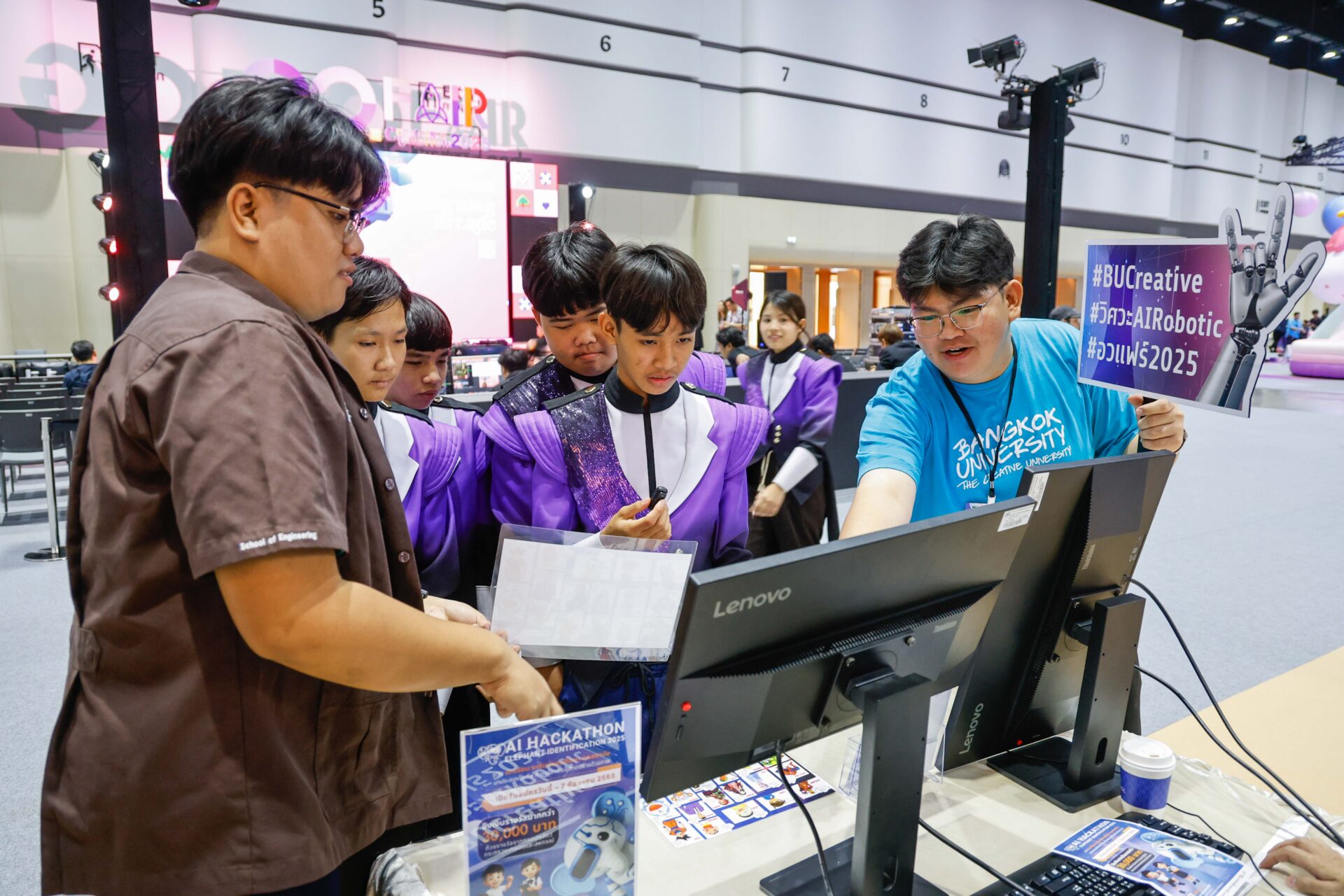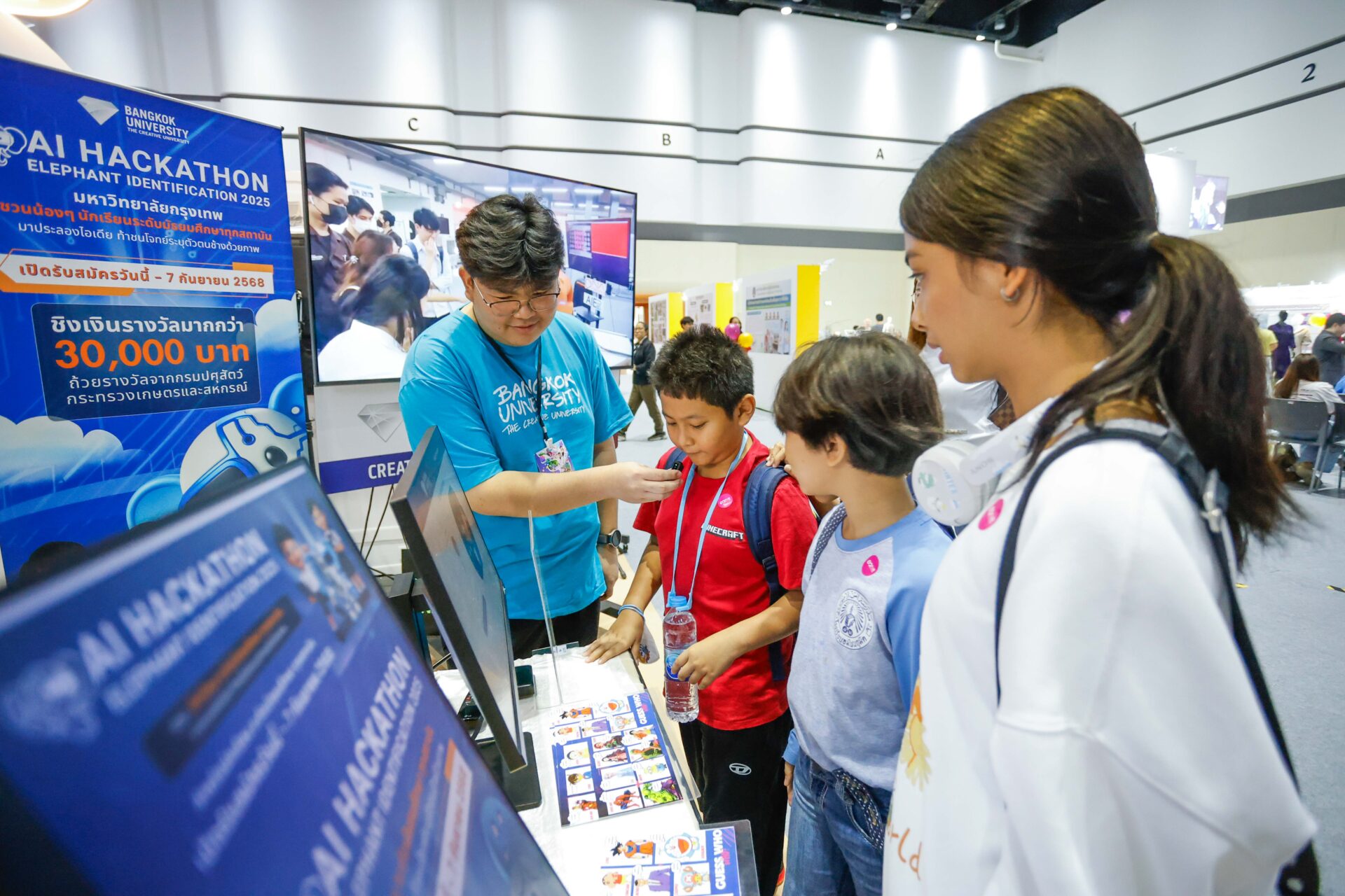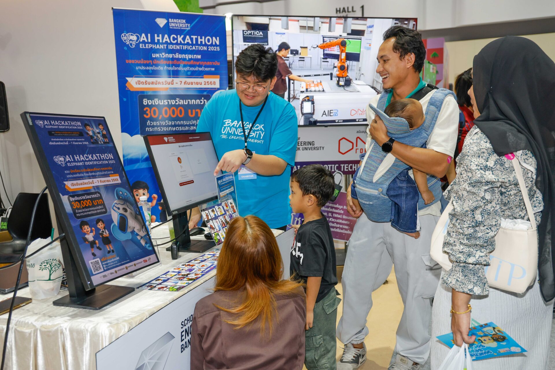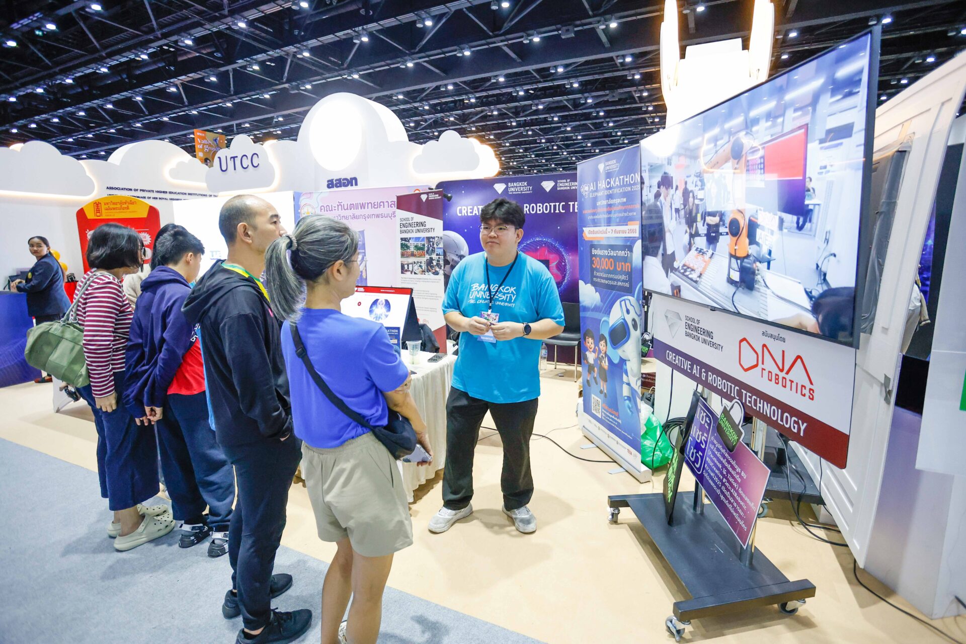 มหาวิทยาลัยกรุงเทพ ขับเคลื่อนสู่แนวหน้าการศึกษาและนวัตกรรม ด้วยการเข้าร่วมงาน อว.Fair 2025 SCI POWER FOR FUTURE THAILAND งานมหกรรมวิทยาศาสตร์และนวัตกรรมที่ยิ่งใหญ่ที่สุดแห่งปีของกระทรวงการอุดมศึกษาวิทยาศาสตร์ วิจัย และนวัตกรรม ภายใต้คอนเซปต์ "Creative AI & Robotic Technology" บูธนิทรรศการนำเสนอผลงานการผสมผสานที่ล้ำสมัยระหว่างเทคโนโลยีหุ่นยนต์ (Robot) และปัญญาประดิษฐ์ (AI) ที่ไม่เพียงแค่ตอบโจทย์อุตสาหกรรม แต่ยังปลดปล่อยศักยภาพความสร้างสรรค์ได้อย่างไร้ขีดจำกัด นวัตกรรมเหล่านี้เกิดจากความเชี่ยวชาญของคณะวิศวกรรมศาสตร์ที่ได้พัฒนาและวิจัยอย่างต่อเนื่องในสองด้านหลักทั้งเทคโนโลยีหุ่นยนต์ (Robot) และปัญญาประดิษฐ์ (AI) โดยผู้เข้าร่วมงานจะได้สัมผัสประสบการณ์จริงผ่านการทดลองด้วยตนเอง ทั้งนี้ ได้รับเกียรติจาก นางสาวสุดาวรรณ หวังศุภกิจโกศล รัฐมนตรีว่าการกระทรวงการอุดมศึกษา วิทยาศาสตร์ วิจัยและนวัตกรรม เข้าเยี่ยมชมบูธพร้อมให้กำลังใจนักศึกษา