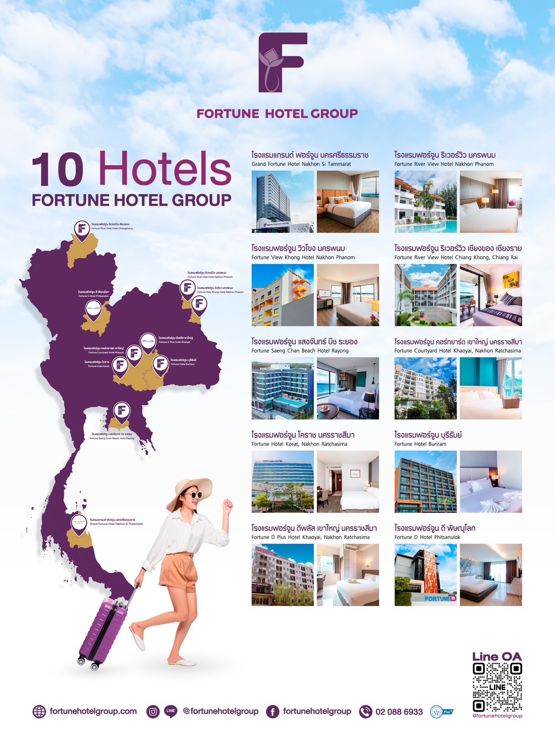 นายเยี่ยม เศรษฐบุตร ผู้อำนวยการ กลุ่มงานธุรกิจโรงแรม บริษัท ซี.พี. แลนด์ จำกัด (มหาชน) กล่าวว่า ฟอร์จูน โฮเทล กรุ๊ป มุ่งมั่นสนับสนุนการท่องเที่ยวไทยอย่างต่อเนื่องเพราะเราเชื่อว่าการเดินทางที่ดีเป็นการสร้างความสุขและช่วยขับเคลื่อนเศรษฐกิจท้องถิ่น เราภูมิใจที่ได้มอบข้อเสนอพิเศษ พร้อมการบริการที่เป็นมิตรและอบอุ่น เพื่อให้นักเดินทางทุกท่านได้สัมผัสความประทับใจในทุกการพักผ่อนและเป็นแรงบันดาลใจในการท่องเที่ยวต่อไป