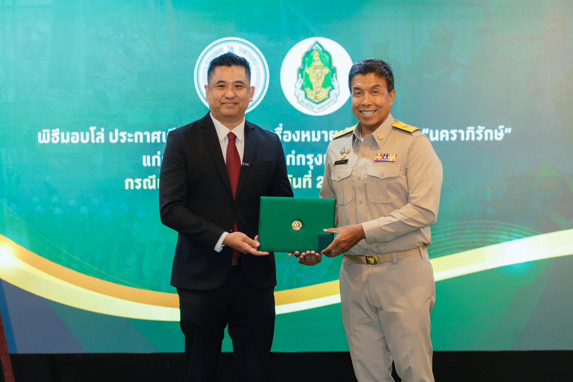 นายชัชชาติ สิทธิพันธุ์ ผู้ว่าราชการกรุงเทพมหานคร มอบใบประกาศเกียรติคุณและ “เข็มนคราภิรักษ์” ให้แก่หน่วยงานภาครัฐ อาสาสมัคร และภาคเอกชน รวมถึงบมจ. ทรู คอร์ปอเรชั่น โดยมีนายวิทวัส เพชรสงคราม ผู้เชี่ยวชาญ หน่วยงานรัฐกิจสัมพันธ์ บมจ. ทรู คอร์ปอเรชั่น เป็นตัวแทนรับมอบ ในฐานะองค์กรภาคเอกชนที่ให้การช่วยเหลือและสนับสนุนในด้านต่างๆ เพื่อค้นหาผู้ประสบภัย กรณีเหตุอาคารสำนักงานการตรวจเงินแผ่นดินแห่งใหม่ถล่มจากเหตุแผ่นดินไหว เมื่อวันที่ 28 มีนาคม 2568 ที่ผ่านมา โดยมี รศ.ดร.ทวิดา กมลเวชช รองผู้ว่าราชการกรุงเทพมหานคร ร่วมแสดงความยินดี ซึ่งงานครั้งนี้ กรุงเทพมหานคร จัดขึ้นเพื่อเป็นการขอบคุณและยกย่องเชิดชูเกียรติที่องค์กรทุกภาคส่วนมีส่วนร่วมในการบรรเทาสาธารณภัยในเหตุการณ์ดังกล่าว ณ ห้องรัตนโกสินทร์ ศาลาว่าการกรุงเทพมหานคร (เสาชิงช้า)