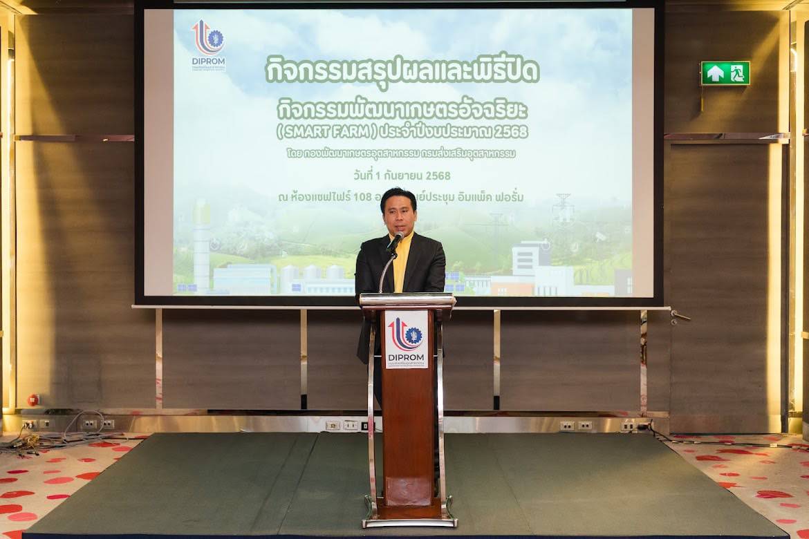 “การดำเนินการของกองพัฒนาเกษตรอุตสาหกรรม กรมส่งเสริมอุตสาหกรรม มีสถานประกอบการ กว่า 40 กิจการในพื้นที่จังหวัดกรุงเทพฯ นนทบุรี ปทุมธานี พระนครศรีอยุธยา สระบุรี และสมุทรปราการ ได้เข้าร่วมกิจกรรมต่างๆ ที่เน้นการถ่ายทอดองค์ความรู้และการใช้เทคโนโลยีใหม่ๆ ในการผลิตและบริหารจัดการ ตั้งแต่การวินิจฉัยศักยภาพธุรกิจจนถึงการให้คำปรึกษาเชิงลึกจากผู้เชี่ยวชาญ โดยผลลัพธ์ที่ได้ไม่เพียงแค่ลดต้นทุนหรือเพิ่มผลผลิตเท่านั้น แต่ยังสร้างมูลค่าใหม่ในธุรกิจเกษตรไทยอย่าง ยั่งยืนและแข่งขันได้ในตลาดโลก โดย 4 กิจการเด่นที่สร้างแรงบันดาลใจและสร้าง Success Cases ที่ได้รับการยกย่องเป็นต้นแบบของความสำเร็จในการใช้เทคโนโลยีเกษตรอัจฉริยะ ได้แก่ ไร่ภูนวพันธุ์ วิสาหกิจชุมชนบ้านซับมะกรูด วิสาหกิจชุมชนเหรียญเจริญสวนสมุนไพรเกษตรธรรมชาติ วิสาหกิจชุมชนภูริธาราพรรณ กิจการเหล่านี้ได้แสดงให้เห็นว่า เทคโนโลยี สามารถนำไปสู่ ความสำเร็จ ในการพัฒนาธุรกิจเกษตรและเพิ่มมูลค่าให้กับสินค้าเกษตรไทยได้อย่างชัดเจน” ผอ.กลุ่มนโยบายและแผนเกษตรอุตสาหกรรม ดีพร้อม กล่าวและว่า
