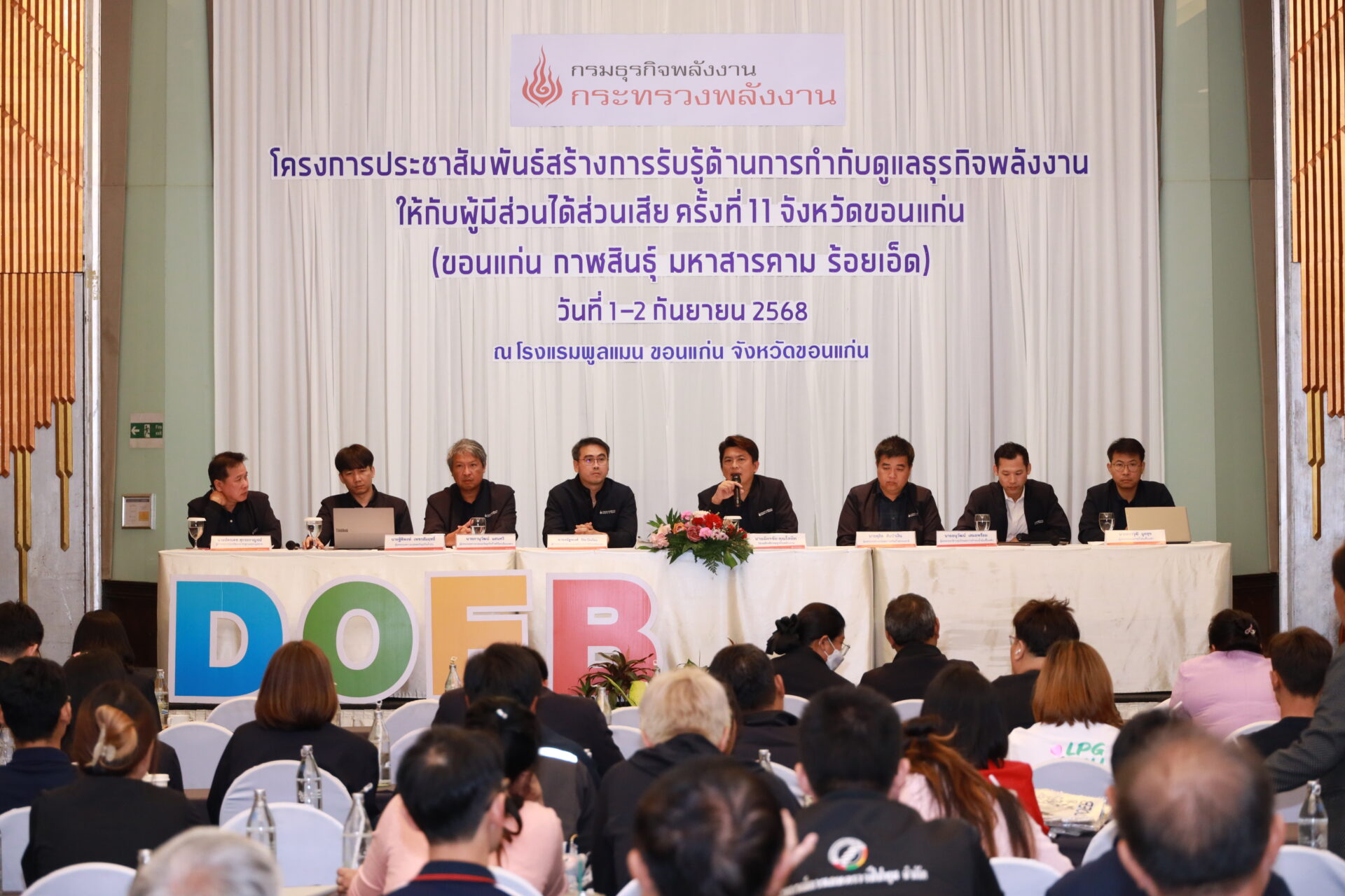 กรมธุรกิจพลังงาน กระทรวงพลังงาน เดินหน้าขับเคลื่อนภารกิจการกำกับดูแลธุรกิจพลังงานให้ก้าวทันการเปลี่ยนแปลงของโลกพลังงาน ผ่าน "โครงการประชาสัมพันธ์สร้างการรับรู้ด้านการกำกับดูแลธุรกิจพลังงานให้กับผู้มีส่วนได้ส่วนเสีย" โดยกิจกรรมครั้งที่ 11 นี้จัดขึ้นระหว่างวันที่ 1 – 2 กันยายน 2568 ณ โรงแรม พลูแมน ขอนแก่น ราชา ออคิด จังหวัดขอนแก่น ครอบคลุมพื้นที่ภาคตะวันออกเฉียงเหนือตอนกลาง ได้แก่ จังหวัดขอนแก่น กาฬสินธุ์ มหาสารคาม และร้อยเอ็ด