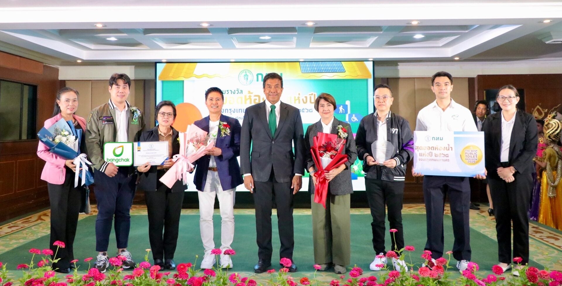 ที่สุดของความใส่ใจบริการ สถานีบริการน้ำมันบางจากได้รับรางวัลสุดยอดห้องน้ำแห่งปี 2568 ถึง 2 รางวัล ได้แก่ สถานีบริการน้ำมันบางจากบลูมมิ่งเทล พุทธมณฑลสาย 3 ได้รับรางวัล “สุดยอดห้องน้ำแห่งปี” และสถานีบริการน้ำมันบางจากอินฟินิท เกษตร-นวมินทร์ ได้รับรางวัล “ห้องน้ำมาตรฐานดีเด่น” จากโครงการประกวดสุดยอดห้องน้ำแห่งปีของกรุงเทพมหานคร (กทม.) 2568 ที่จัดขึ้นเพื่อร่วมพัฒนาห้องน้ำสาธารณะให้สะอาด เพียงพอ และปลอดภัย ลดปัจจัยเสี่ยงต่อการเกิดโรคติดต่อต่างๆ อีกทั้งห้องน้ำดีคือตัวชี้วัดความเจริญของเมืองนั้นๆ โดยผู้บริหารบริษัท บางจาก คอร์ปอเรชั่น จำกัด (มหาชน) และผู้ประกอบการสถานีบริการน้ำมันบางจากรับมอบรางวัลจากนายชัชชาติ สิทธิพันธุ์ ผู้ว่าราชการกรุงเทพมหานคร ณ ศาลาว่าการ กทม. เมื่อวันที่ 2 ก.ย. 68 ที่ผ่านมา.