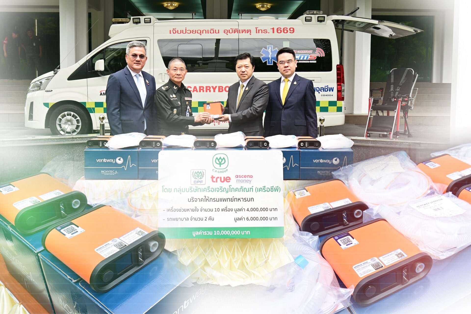 เครือเจริญโภคภัณฑ์ (ซีพี) ตอกย้ำบทบาทองค์กรเอกชนที่อยู่เคียงข้างสังคมไทยทุกครั้งที่เผชิญวิกฤต ล่าสุดได้ส่งมอบนวัตกรรมทางการแพทย์เพื่อเสริมศักยภาพบุคลากรด่านหน้าในพื้นที่ชายแดน โดยมอบ เครื่องช่วยหายใจพกพาสมรรถนะสูงและขนาดเล็กที่สุดในโลก จำนวน 10 เครื่อง และรถพยาบาลอัจฉริยะ 2 คัน รวมมูลค่ากว่า 10 ล้านบาท แก่กรมแพทย์ทหารบก กองทัพบก เพื่อเพิ่มประสิทธิภาพในการดูแลผู้ป่วยฉุกเฉินและช่วยเหลือทหารกับประชาชนในพื้นที่ชายแดนได้อย่างรวดเร็วและปลอดภัย