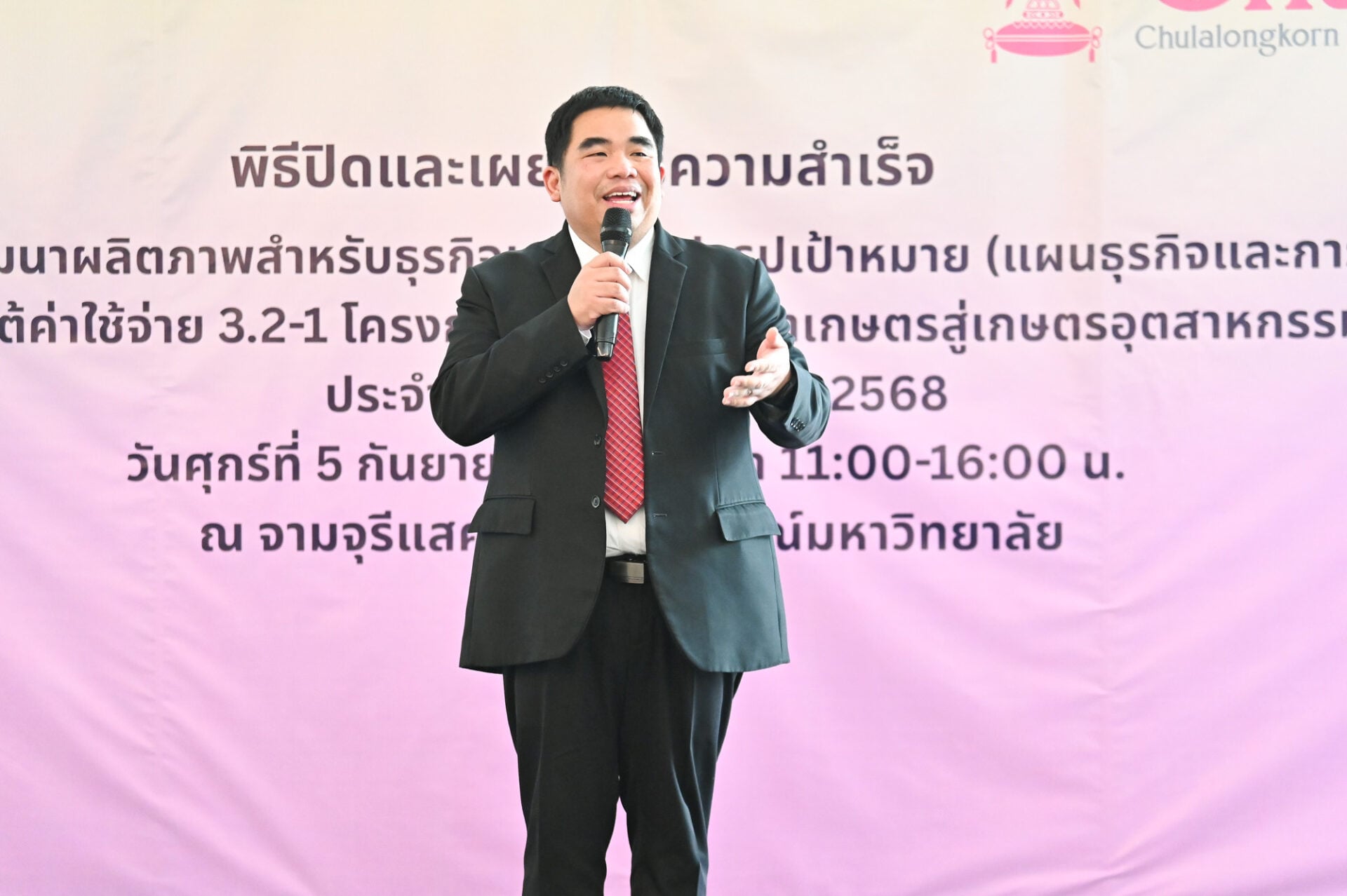 กรมส่งเสริมอุตสาหกรรม ร่วมมือกับจุฬาลงกรณ์มหาวิทยาลัย โดยศูนย์บริการวิชาการแห่งจุฬาฯ จัดพิธีปิดและเผยแพร่ความสำเร็จของกิจกรรมพัฒนาผลิตภาพสำหรับธุรกิจเกษตรแปรรูปเป้าหมาย (แผนธุรกิจและการตลาด) โครงการยกระดับสินค้าเกษตรสู่เกษตรอุตสาหกรรม ประจำปี 2568 เมื่อเร็ว ๆ นี้ ณ จามจุรีสแควร์ โดยมี รศ.ดร.ดำรงค์ วัฒนา รองกรรมการผู้อำนวยการศูนย์บริการวิชาการแห่งจุฬาฯ กล่าวสรุปผลการดำเนินงานและความสำเร็จของโครงการ ศ.ดร. ศุภอรรจ ศิริกันทรมาศ ผู้ช่วยคณบดี คณะวิทยาศาสตร์ จุฬาฯ กล่าวต้อนรับ และ ดร.กิตติโชติ ศุภกำเนิด ผู้อำนวยการกองพัฒนาเกษตรอุตสาหกรรม กรมส่งเสริมอุตสาหกรรม กล่าวแสดงความยินดีแก่ผู้ประกอบการที่เข้าร่วมกิจกรรม