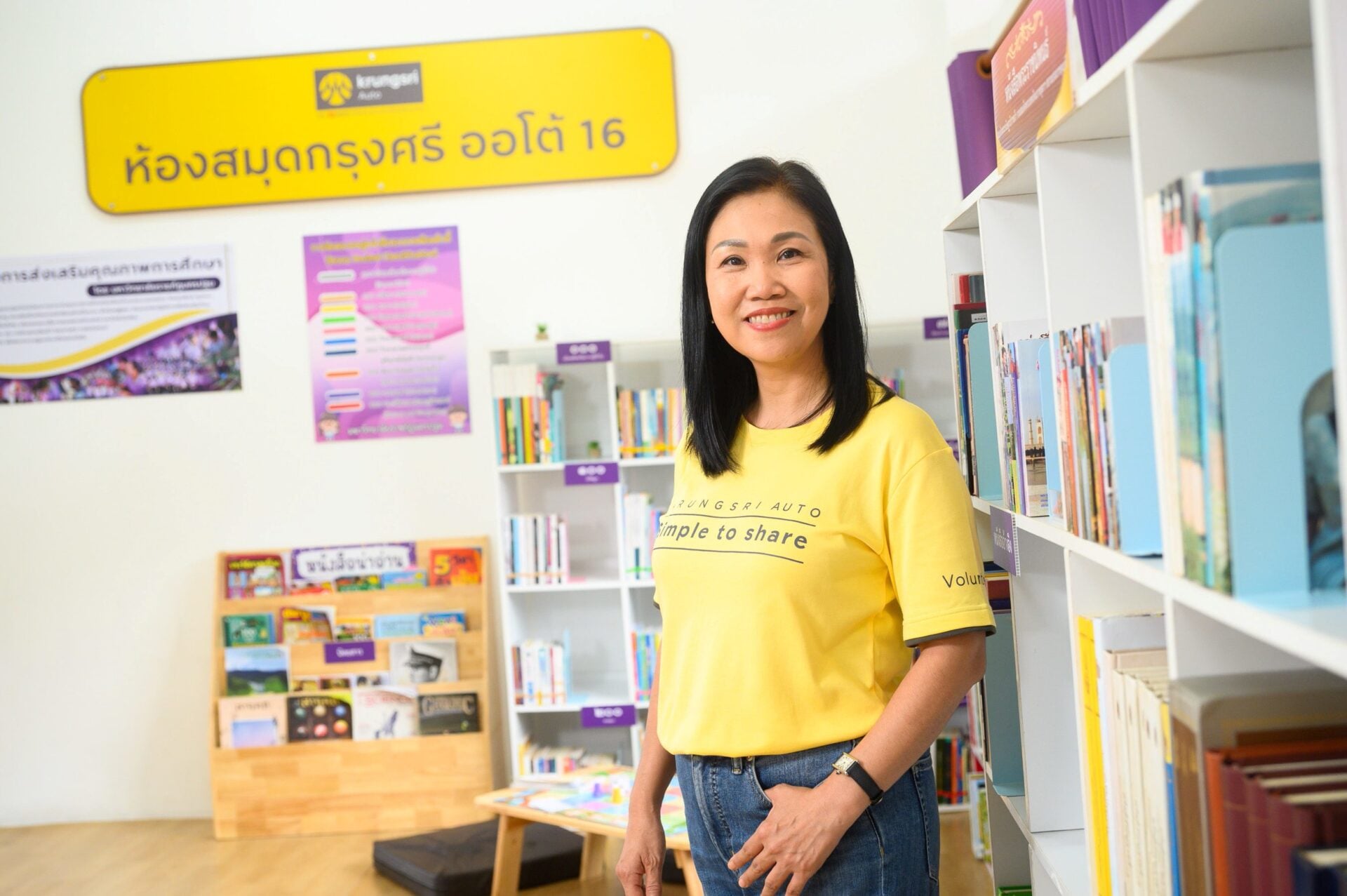 น้องแก้ม หรือ ด.ญ. ปิ่นมณี งามยิ่ง นักเรียนชั้นประถมศึกษาปีที่ 6 กล่าวว่า “หนูเข้ามาห้องสมุดทุกวันเลยค่ะ เพราะได้ทำหน้าที่เป็น ‘บรรณารักษ์น้อย’ คอยดูแลความเรียบร้อย ลงทะเบียนผู้ใช้ และติดตาม การยืม-คืนหนังสือของห้องสมุด ซึ่งทำให้หนูได้ฝึกทักษะความเป็นผู้นำจากการเป็นบรรณารักษ์น้อย ผ่านการคอยประสานงาน พร้อมกับการดูแลให้ทุกคนใช้ห้องสมุดอย่างเป็นระเบียบ หนูดีใจมากที่ได้รับคอมพิวเตอร์ จาก กรุงศรี ออโต้ มาช่วยจัดการข้อมูล ทำให้ทุกอย่างสะดวกและรวดเร็วขึ้น จนทำให้งานบรรณารักษ์กลายเป็นเรื่องง่ายและสนุกกว่าเดิมด้วย หนูมองว่าหน้าที่นี้ทำให้หนูมีความรับผิดชอบและรู้จักการทำงานร่วมกับผู้อื่นมากขึ้นค่ะ”