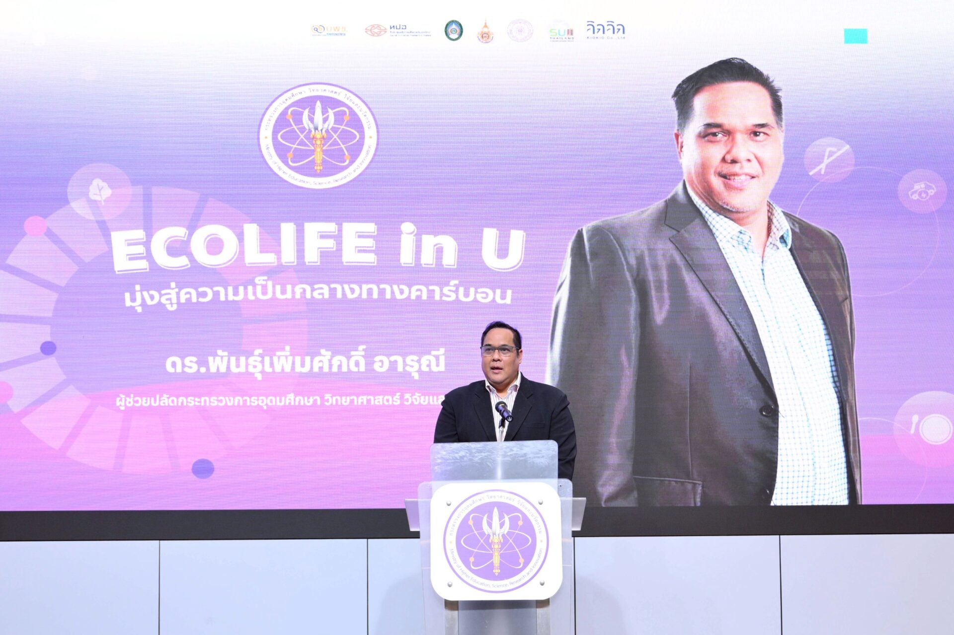 ดร.พันธุ์เพิ่มศักดิ์ อารุณี ผู้ช่วยปลัดกระทรวงการอุดมศึกษา วิทยาศาสตร์ วิจัยและนวัตกรรม (อว.) กล่าวว่า “โครงการ "ECOLIFE in U" นับเป็นก้าวสำคัญของกระทรวง อว. ในการพัฒนาสถาบันอุดมศึกษาให้มีคุณภาพอย่างยั่งยืน (Sustainable University) และมุ่งสู่เป้าหมาย “ความเป็นกลางทางคาร์บอน” (Carbon Neutrality) โดยมุ่งเน้นการสร้างการรับรู้และปลูกจิตสำนึกด้านสิ่งแวดล้อมให้กับนิสิต นักศึกษา และบุคลากรในสถาบันอุดมศึกษา โดย "U" หมายถึงทั้งนิสิต นักศึกษา (You) และมหาวิทยาลัยทั่วประเทศ (University) ซึ่งเริ่มดำเนินโครงการตั้งแต่ปี 2567”