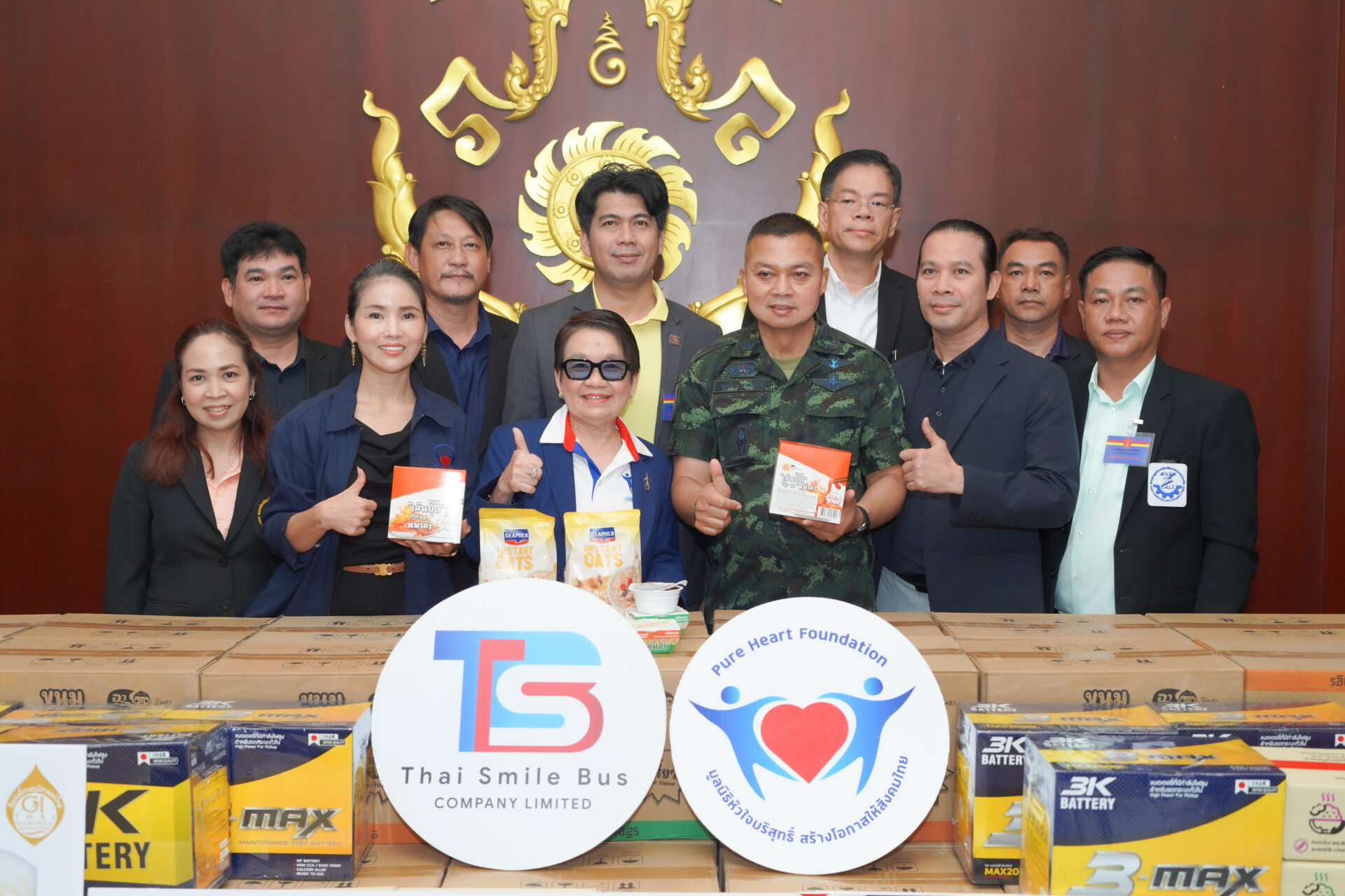 วันที่ 23 กันยายน 2568 นางเธียรรัตน์ นะวะมะวัฒน์ ประธานมูลนิธิหัวใจบริสุทธิ์ พร้อมด้วยนางสาวกุลพรภัสร์ วงศ์มาจารภิญญา ประธานเจ้าหน้าที่บริหาร บริษัท ไทย สมายล์ บัส จำกัด (TSB) และภาคีเครือข่าย ได้มอบสิ่งของอุปโภคบริโภคและแบตเตอรี่รถยนต์ให้แก่กองทัพบก โดยมี พลโทบุญสิน พาดกลาง แม่ทัพภาคที่ 2 เป็นผู้แทนรับมอบ ณ กองบัญชาการกองทัพบก ถนนราชดำเนินนอก แขวงบางขุนพรหม เขตพระนคร กรุงเทพมหานคร