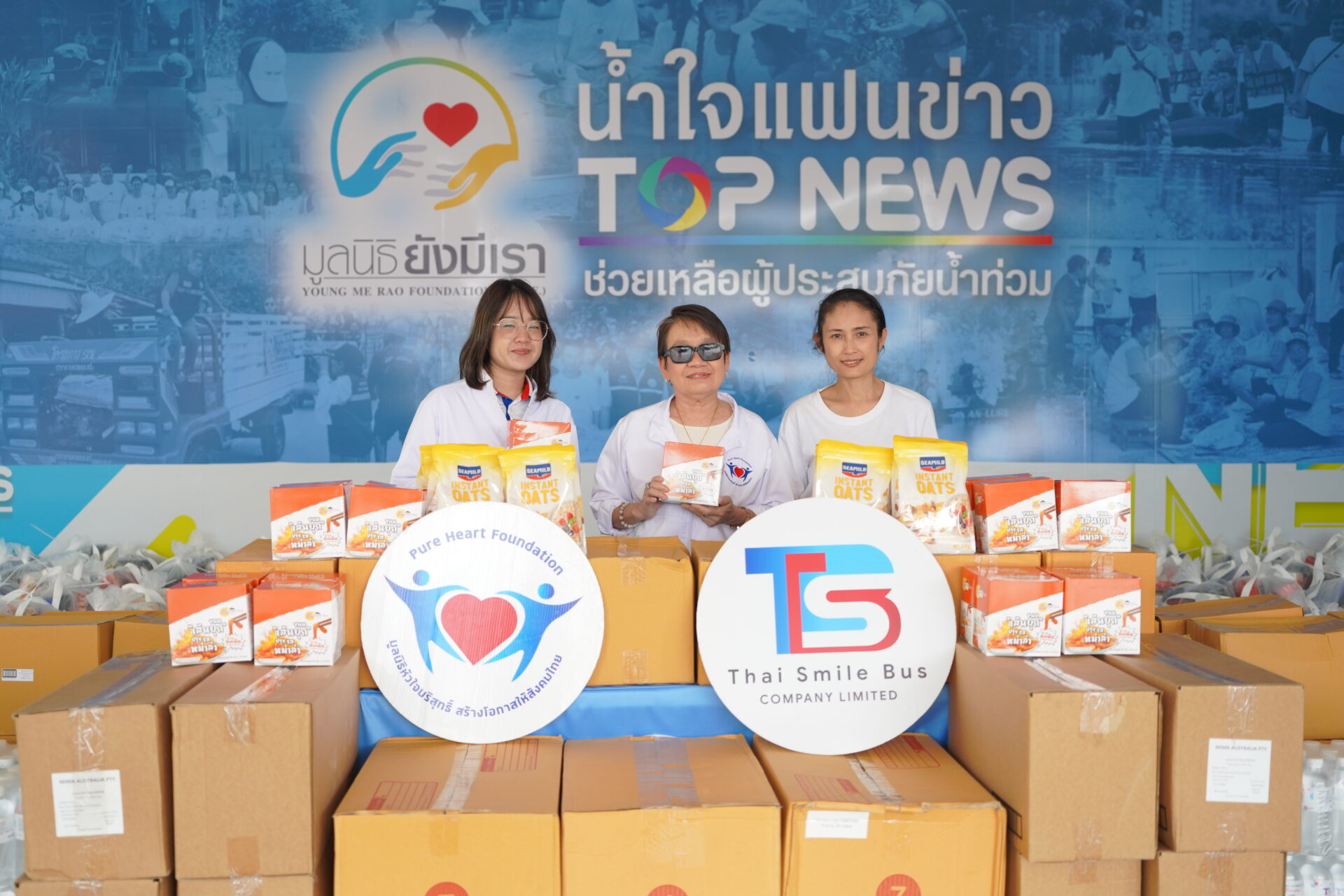 วันที่ 24 กันยายน 2568 นางเธียรรัตน์ นะวะมะวัฒน์ ประธานมูลนิธิหัวใจบริสุทธิ์ พร้อมทีมงาน ได้ร่วมกับบริษัท ไทย สมายล์ บัส จำกัด (TSB) ส่งมอบสิ่งของจำเป็นให้แก่ประชาชน ประกอบด้วยน้ำดื่ม 600 ขวด จากบริษัท ไทย สมายล์ บัส จำกัด มูลค่า 21,000 บาท และข้าวโอ๊ต จำนวน 600 ถุง มูลค่า 120,000 บาท จากบริษัท แวลู่พลัส รีเทล จำกัด, ขนมเส้นบุกปรุงรสหม่าล่า 36,000 ซอง มูลค่า 360,000 บาท จากบริษัท ไบ่ลี่ เอ็นเตอร์ไพร์ส จำกัด รวมมูลค่าทั้งสิ้น 501,000 บาท โดยสิ่งของทั้งหมดถูกส่งต่อผ่านมูลนิธิยังมีเรา เพื่อให้ชาวบ้านในพื้นที่ประสบอุทกภัยสามารถเข้าถึงสิ่งจำเป็นและอำนวยความสะดวกในการใช้ชีวิตประจำวันได้ โดยมี นางสาวสุชาวดี ณัฐเสณี เจ้าหน้าที่มูลนิธิยังมีเรา เป็นผู้รับมอบ ณ สถานีข่าวท็อปนิวส์