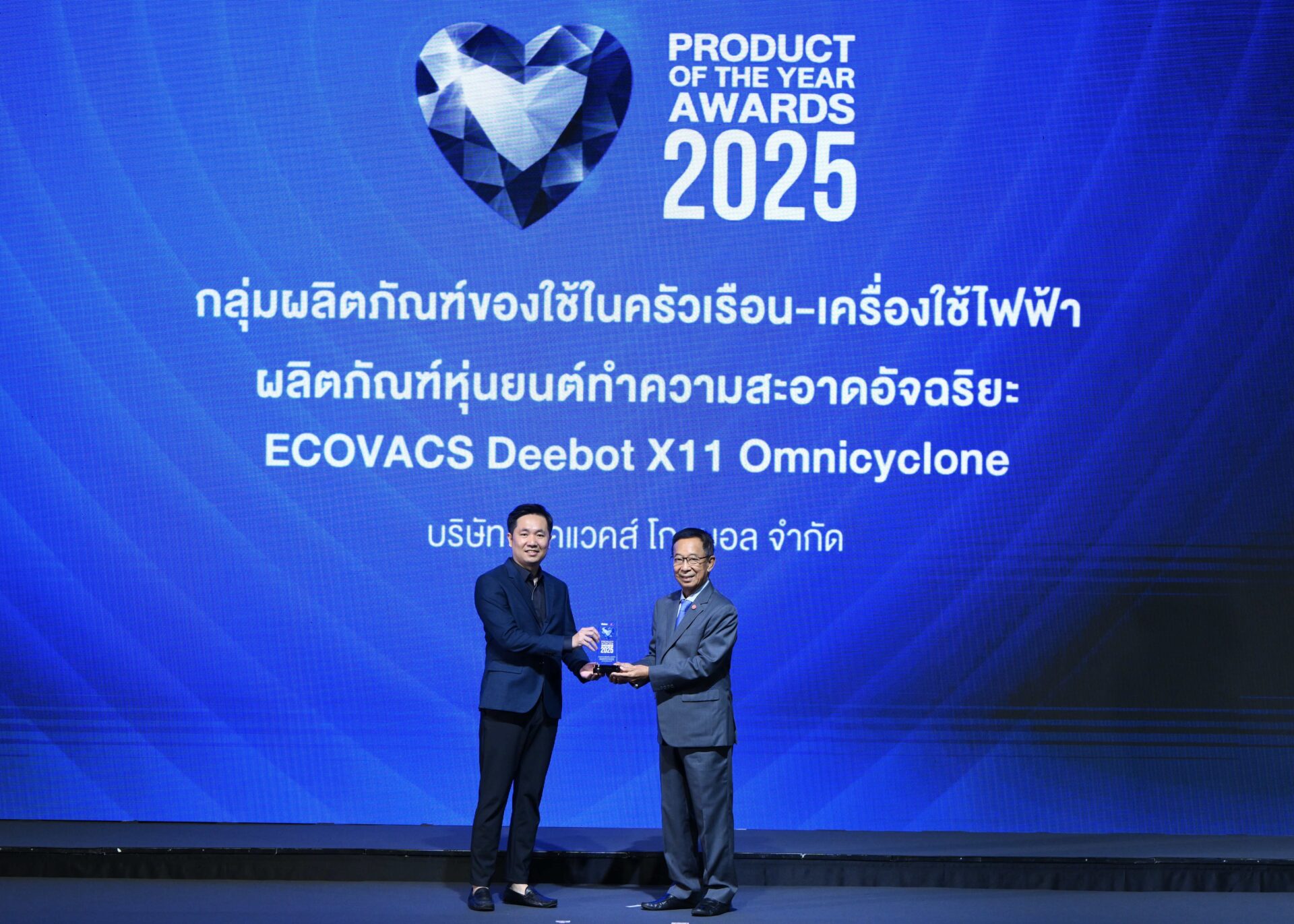 นายดาเนียล ดาว ผู้จัดการแบรนด์ ECOVACS ประจำประเทศไทย บริษัท อีโคแวคส์ โกลบอล จำกัด เปิดเผยว่า “Deebot X11 Omnicyclone ถูกพัฒนาภายใต้แนวคิด “Xtra in Every Way, Ahead in Every Play” ที่ต้องการให้ผลิตภัณฑ์ครบเครื่องในทุกด้าน ทีมวิจัยและพัฒนาได้ผสานเทคโนโลยี AI ขั้นสูงเข้ากับการออกแบบเชิงวิศวกรรมที่ล้ำสมัย และเข้าใจความต้องการจริงของผู้บริโภค ส่งผลให้ผลิตภัณฑ์นี้คว้ารางวัลการันตีคุณภาพจาก IFA 2025 Award ที่เยอรมนีก่อนจะได้รับการยอมรับจากเวทีระดับประเทศในครั้งนี้