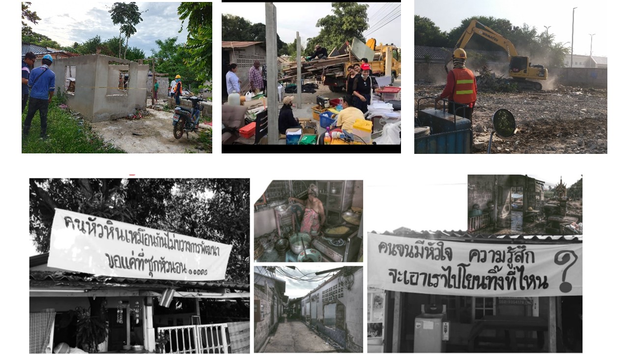 ชุมชนเขาพิทักษ์ (อดีตชื่อชุมชน) ตั้งอยู่เลียบทางรถไฟหัวหิน จังหวัดประจวบคีรีขันธ์ สมาชิกส่วนใหญ่อยู่อาศัยและประกอบอาชีพรับจ้างมาตั้งแต่รุ่นพ่อแม่กว่า 40 ปี โดยไม่มีกรรมสิทธิ์ในที่ดิน สภาพปัญหา บ้านทรุดโทรม แออัด (บางหลังอยู่รวมกัน 10 คน มีห้องน้ำเดียว) ใช้ไฟฟ้าชั่วคราวราคาแพง ใช้น้ำประปาดิบ และประสบปัญหาน้ำท่วมขัง จุดเปลี่ยน ในปี พ.ศ. 2560 การรถไฟฯ แจ้งไล่รื้อชุมชนเพื่อพัฒนาโครงการรถไฟรางคู่ ทำให้ชาวบ้านต้องเผชิญหน้ากับชะตากรรมการไร้ที่อยู่