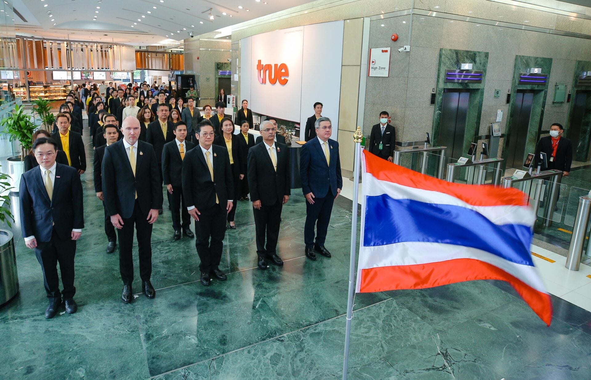 บมจ. ทรู คอร์ปอเรชั่น ร่วมจัดกิจกรรมเคารพธงชาติ เนื่องในโอกาสครบรอบ 108 ปี วันพระราชทานธงชาติไทย โดยมี นายจักรกฤษณ์ อุไรรัตน์ หัวหน้าคณะผู้บริหารด้านรัฐกิจสัมพันธ์ บมจ. ทรู คอร์ปอเรชั่น พร้อมด้วย นายมนัสส์ มานะวุฒิเวช หัวหน้าคณะผู้บริหารด้านประสบการณ์ลูกค้าและธุรกิจรีเทล นายชารัด เมห์โรทรา หัวหน้าคณะผู้บริหารด้านกลุ่มธุรกิจลูกค้าบุคคล นายฮากุน บริวเช็ท เชิร์ล หัวหน้าคณะผู้บริหารด้านกลยุทธ์และทรานสฟอร์มเมชั่น นายนิติธรรม โกวิทกูลไกร หัวหน้าสายงานด้านผลิตภัณฑ์และบริการ พร้อมด้วยคณะผู้บริหารและเพื่อนพนักงาน ร่วมกันยืนตรงเคารพธงชาติและร้องเพลงชาติไทยอย่างพร้อมเพรียงกัน ณ อาคารทรู ทาวเวอร์ ถนนรัชดาภิเษก เวลา 8.00 น. ซึ่งกิจกรรมดังกล่าวจัดขึ้นเพื่อน้อมรำลึกถึงพระมหากรุณาธิคุณของพระบาทสมเด็จพระมงกุฎเกล้าเจ้าอยู่หัว รัชกาลที่ 6 ผู้พระราชทานธงไตรรงค์เป็นธงชาติไทยเมื่อวันที่ 28 กันยายน พ.ศ. 2460 นับเป็นสัญลักษณ์อันสูงสุดของชาติ สะท้อนถึงความเสียสละของบรรพบุรุษผู้ปกป้องรักษาแผ่นดินไทย และตอกย้ำพลังใจของคนไทยที่ยืนหยัดเคียงข้างชาติ ศาสนา และพระมหากษัตริย์ ทั้งนี้ ทรู คอร์ปอเรชั่น ได้ร่วมสืบสานกิจกรรมดังกล่าวมาอย่างต่อเนื่อง เพื่อแสดงออกถึงความภาคภูมิใจ ความจงรักภักดีต่อสถาบันหลักของชาติ ความสามัคคีและความมุ่งมั่นขององค์กร ในการขับเคลื่อนธุรกิจโทรคมนาคม-เทคโนโลยี เพื่อสร้างคุณประโยชน์สูงสุดให้กับคนไทยและประเทศไทยอย่างยั่งยืน