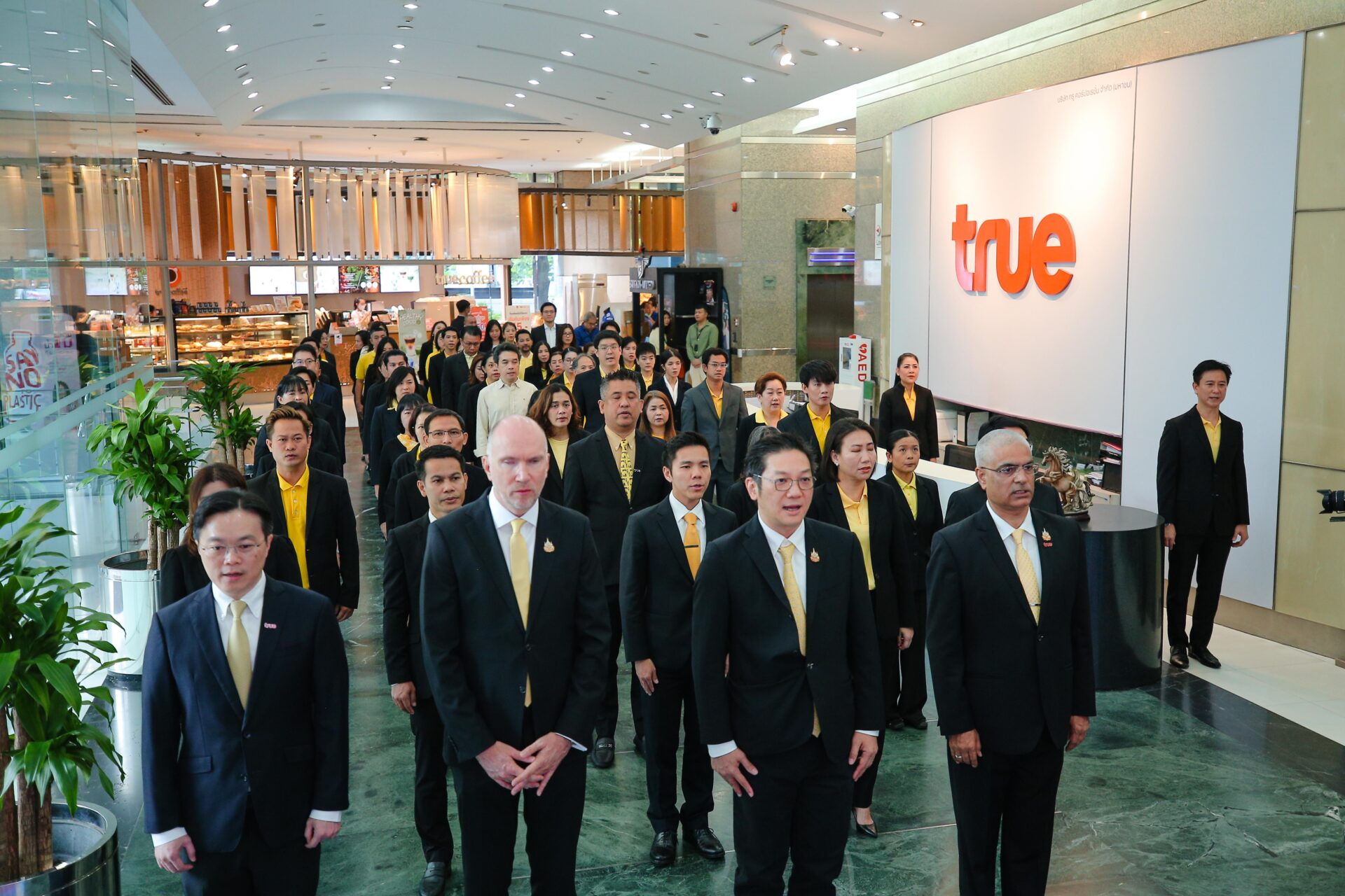 บมจ.ทรู คอร์ปอเรชั่น โดย นายซิกเว่ เบรกเก้ ประธานคณะผู้บริหารกลุ่ม นำคณะผู้บริหารและพนักงานทรู คอร์ปอเรชั่น ทั่วประเทศ ร่วมพิธีแสดงความอาลัย เบื้องหน้าพระฉายาลักษณ์ สมเด็จพระนางเจ้าสิริกิติ์ พระบรมราชินีนาถ พระบรมราชชนนีพันปีหลวง ณ อาคารทรู ทาวเวอร์ ถนนรัชดาภิเษก ด้วยสำนึกในพระมหากรุณาธิคุณอันหาที่สุดมิได้ของ “พระมารดาแห่งแผ่นดิน” ผู้ทรงเป็นพระมิ่งขวัญและร่มโพธิ์ร่มไทรของปวงชนชาวไทย