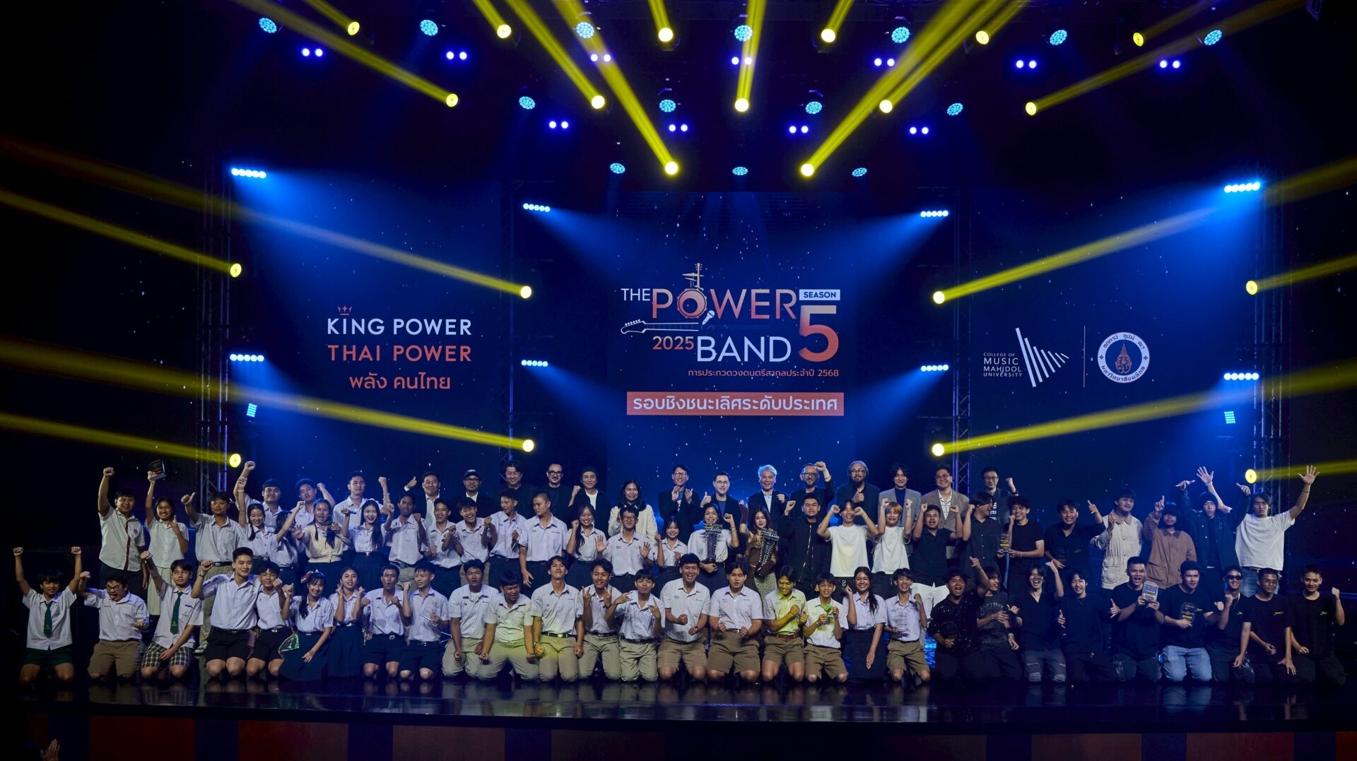 THE POWER BAND 2025 SEASON 5 จัดขึ้นโดย คิง เพาเวอร์ ไทย เพาเวอร์ พลังคนไทย, วิทยาลัยดุริยางคศิลป์ มหาวิทยาลัยมหิดล, 8 ค่ายเพลงชั้นนำ ประกอบด้วย Muzik Move, Smallroom, LOVEiS Entertainment, What The Duck, Warner Music Thailand, XOXO Entertainment, YUPP! Entertainment และ Universal Music Thailand พร้อมด้วยพันธมิตรที่มาร่วมสนับสนุนพลังทางดนตรี ได้แก่ Singha Corporation, T-POP STAGE, The Guitar Mag, Yamaha Music Thailand และ Multiply by Eight ภายใต้คอนเซปต์ “MUSIC CREATES MORE POSSIBILITIES พลังดนตรี เป็นไปได้ ไม่สิ้นสุด” โดยมี นายธีรชาติ ธนสารกิจ รองประธานเจ้าหน้าที่สายงานภาพลักษณ์และสื่อสารองค์กร กลุ่มบริษัท คิง เพาเวอร์, ดร.ณรงค์ ปรางค์เจริญ คณบดีวิทยาลัยดุริยางคศิลป์ มหาวิทยาลัยมหิดล, นายคชภัค ผลธนโชติ ผู้บริหาร Muzik Move, นายศวิชญ์ สุวรรณกุล ผู้บริหาร YUPP! Entertainment และแขกผู้มีเกียรติ ร่วมงาน ณ โรงละครอักษรา คิง เพาเวอร์ รางน้ำ