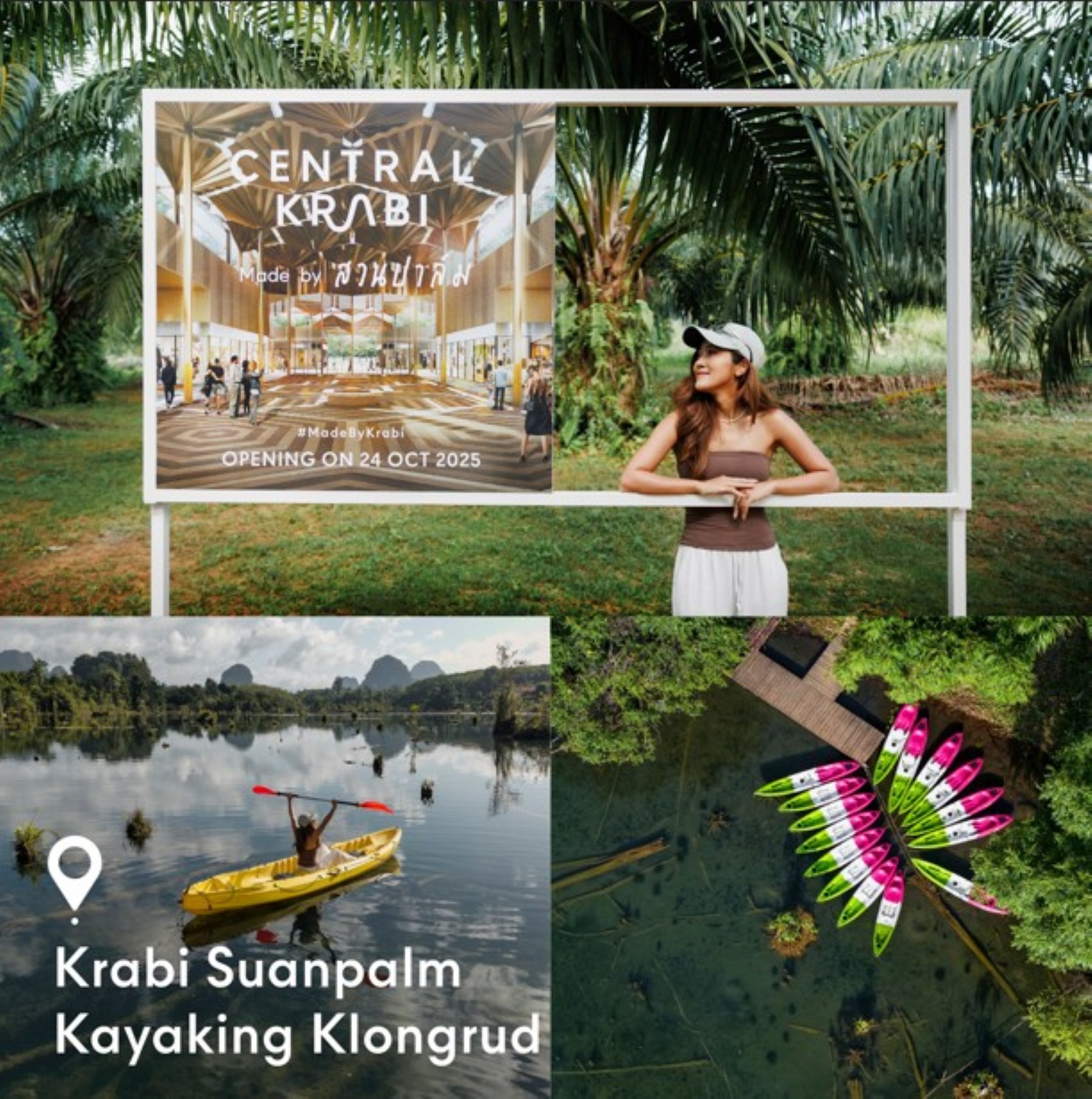 - ถ่ายรูปคู่กับ Creative Billboard เซ็นทรัล กระบี่ ณ พิกัดที่กำหนด (Khaothong Hill, Krabi Suanpalm Kayaking หรือ M Leaf Café)