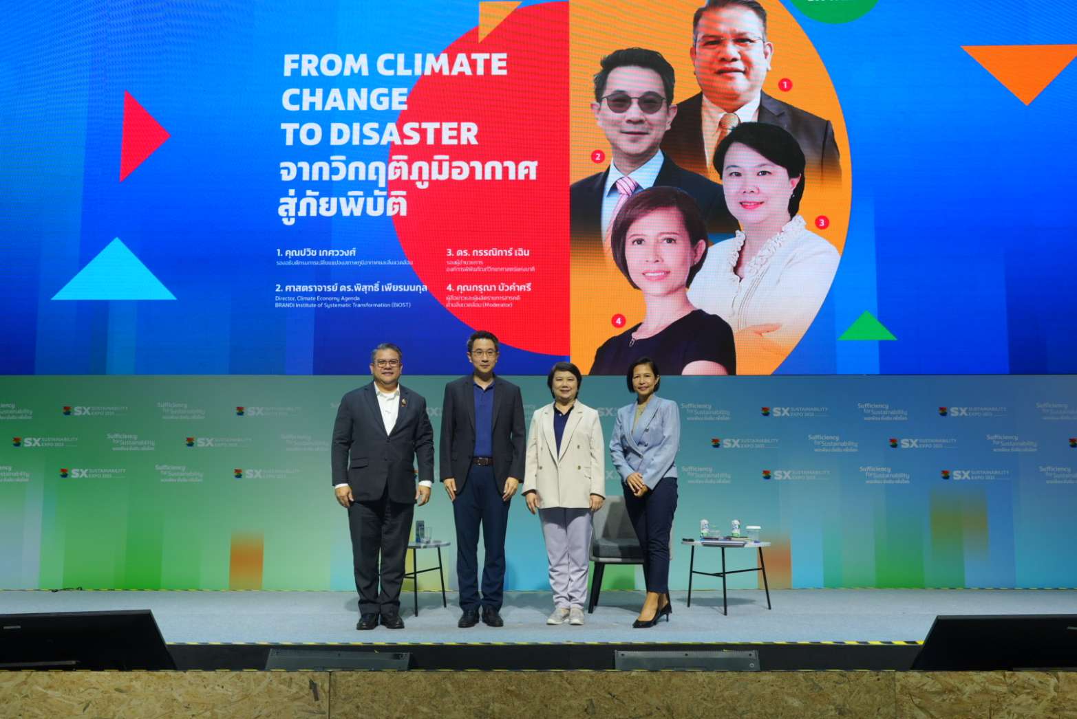 เวทีเสวนา From Climate Change to Disaster ในงาน Sustainability Expo 2025 ผู้ร่วมแลกเปลี่ยนประกอบด้วย ปวิช เกศววงศ์ รองอธิบดีกรมการเปลี่ยนแปลงสภาพภูมิอากาศ ศ.ดร.พิสุทธิ์ เพียรมนกุล จาก BiOST ดร.กรรณิการ์ เฉิน รองผู้อำนวยการองค์การพิพิธภัณฑ์วิทยาศาสตร์แห่งชาติ และ กรุณา บัวคำศรี ผู้สื่อข่าวสายสิ่งแวดล้อม ต่างสะท้อนเป็นเสียงเดียวกันว่า สังคมไทยไม่อาจเพิกเฉยต่อสัญญาณเหล่านี้ได้อีกต่อไป