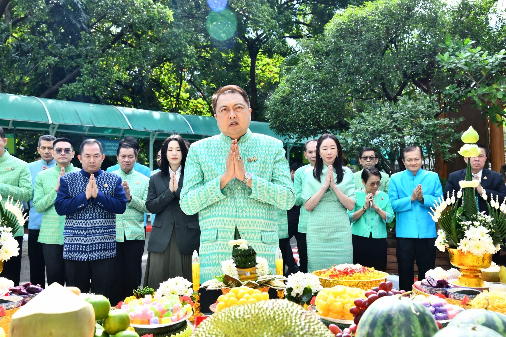 วันนี้ (3 ตุลาคม 2568) เวลา 08.30 น. นายสุชาติ ชมกลิ่น รองนายกรัฐมนตรีและรัฐมนตรีว่าการกระทรวงทรัพยากรธรรมชาติและสิ่งแวดล้อม พร้อมด้วย ดร.ชญานันท์ ภักดีจิตต์ ปลัดกระทรวงทรัพยากรธรรมชาติและสิ่งแวดล้อม นำคณะผู้บริหาร ข้าราชการ พนักงาน และเจ้าหน้าที่ ร่วมสักการะพระพุทธสยัมภู พระพุทธรูปประจำกระทรวงฯ และศาลพระภูมิเจ้าที่ เนื่องในวันคล้ายวันสถาปนากระทรวงทรัพยากรธรรมชาติและสิ่งแวดล้อม (ทส.) ครบรอบ 23 ปี พร้อมจัดพิธีเจริญพระพุทธมนต์เพื่อความเป็นสิริมงคลในการปฏิบัติหน้าที่ และเสริมพลังใจให้แก่บุคลากรในสังกัดกระทรวงฯ ในการปกป้อง ดูแล และฟื้นฟูทรัพยากรธรรมชาติและสิ่งแวดล้อมของประเทศ