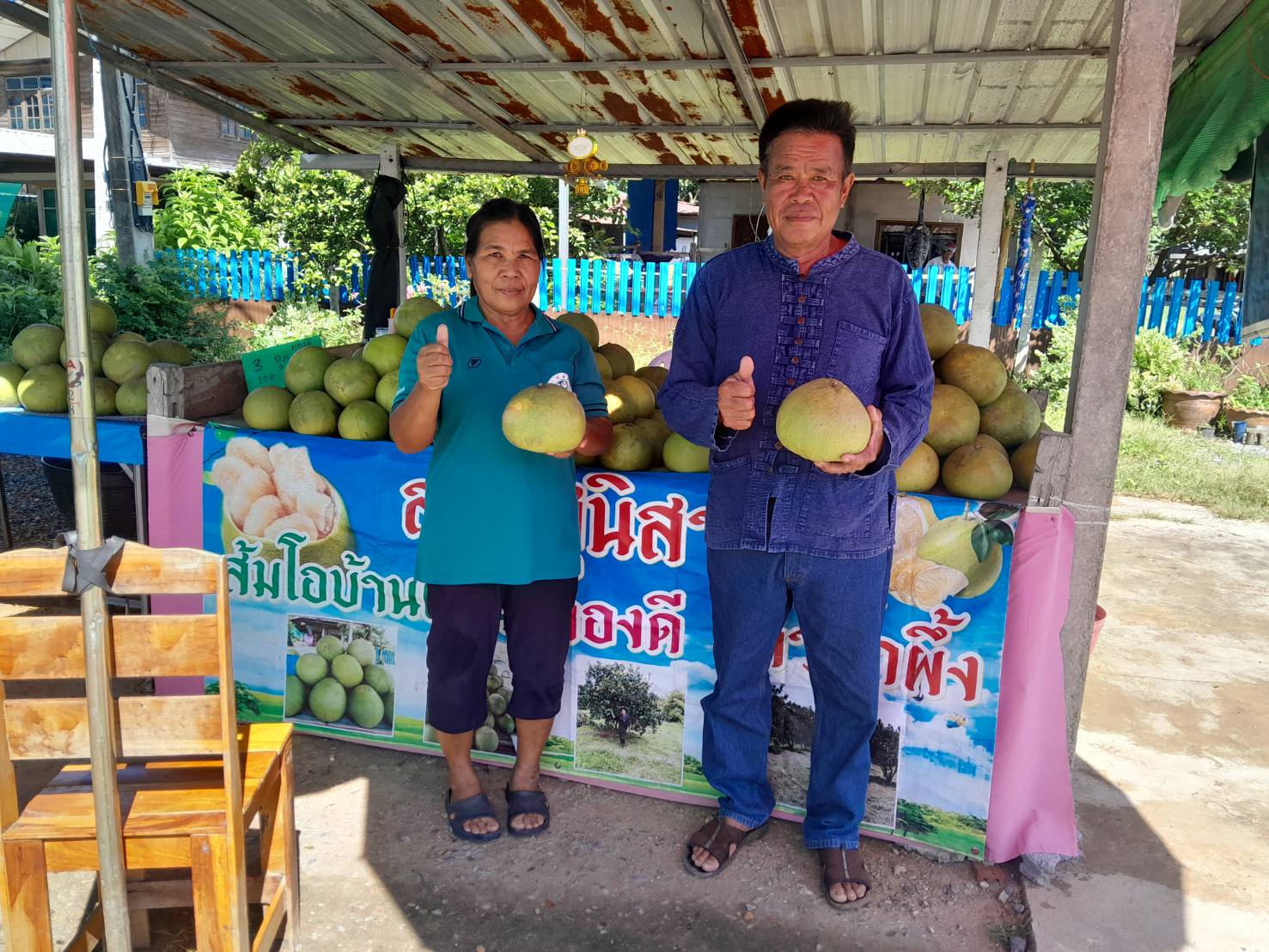 และ 5.เจ้าหน้าที่ฝ่ายส่งน้ำและบำรุงรักษาที่ 3 โครงการชลประทานชัยภูมิ ได้ร่วมกับกรมส่งเสริมการเกษตร ในการส่งเสริมเกษตรกรที่ปลูกข้าวและส้มโอให้เข้าร่วมโครงการเกษตรแปลงใหญ่ทั้งหมด ทำให้มีกระบวนการพัฒนาที่ชัดเจน ได้รับการสนับสนุนองค์ความรู้และอุปกรณ์เครื่องมือต่าง ๆ ทั้งจากภาครัฐและเอกชน มีการพัฒนาผลผลิตให้เป็นที่ยอมรับของลูกค้าในและนอกประเทศ จนกระทั่งส้มโอพันธุ์ทองดี หรือ เมื่อมาปลูกในอ.บ้านแท่น ได้ชื่อว่า “ส้มโอบ้านแท่น” ได้รับการตรวจสอบผ่านมาตรฐาน GAP (Good Agricultural Pratices) มาตรฐาน GI มาตรฐาน GMP (Good Manufacturing Pratices) ทั้งหมด