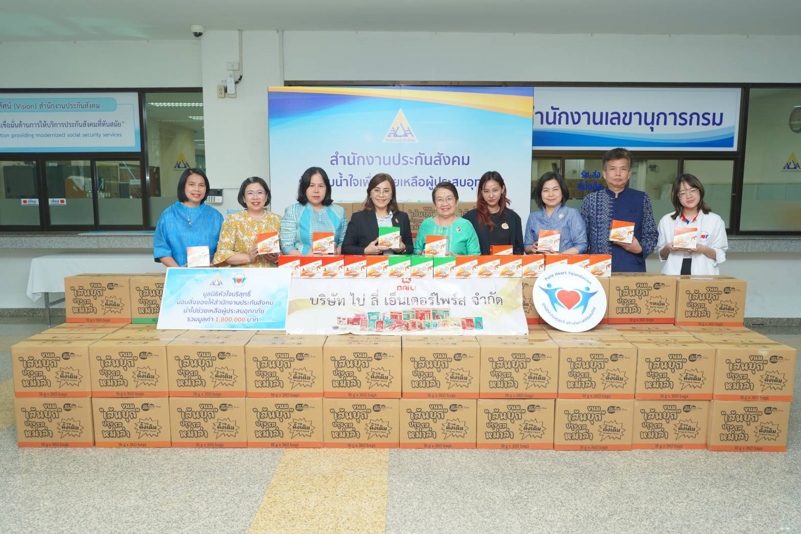 วันที่ 3 ตุลาคม 2568 นางเธียรรัตน์ นะวะมะวัฒน์ ประธานมูลนิธิหัวใจบริสุทธิ์ พร้อมด้วยนางสาวภัทรพร เอี่ยมระหงษ์ ผู้บริหารฝ่ายการตลาด บริษัท ไบ่ ลี่ เอ็นเตอร์ไพร์ส จำกัด ได้ร่วมส่งมอบเส้นบุกปรุงรสหม่าล่า จำนวน 500 ลัง มูลค่า 1,800,000 บาท โดยได้รับการสนับสนุนจากคุณสราญจิตร หวัง กรรมการบริษัท ไบ่ ลี่ เอ็นเตอร์ไพร์ส จำกัด ให้แก่สำนักงานประกันสังคม สำนักงานใหญ่ โดยมีนางสาวบุปผา เรืองสุด เลขาธิการสำนักงานประกันสังคม เป็นผู้รับมอบ เพื่อนำไปกระจายต่อยังประชาชนที่ได้รับผลกระทบจากสถานการณ์อุทกภัยในพื้นที่ต่าง ๆ