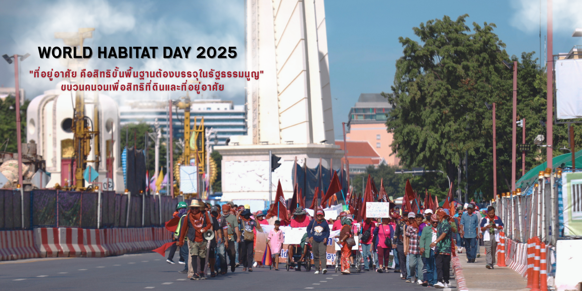 ในปี 2568 นี้ องค์การสหประชาชาติได้กำหนดหัวข้อรณรงค์ในวันที่อยู่อาศัยโลกไว้ว่า urban crisis response “การตอบสนองต่อวิกฤตในเมือง” มุ่งเน้นให้เกิดการแก้ไขปัญหาวิกฤติต่าง ๆ ที่ส่งผลกระทบต่อเมือง เช่น การเปลี่ยนแปลงสภาพภูมิอากาศ และความขัดแย้ง การส่งเสริมเครื่องมือ และแนวทางการรับมือกับวิกฤตที่มีประสิทธิภาพ เน้นย้ำถึงความจำเป็นอย่างยิ่งยวดในการสร้างสภาพแวดล้อมในเมืองที่มีความยืดหยุ่น ทนทาน และฟื้นตัวจากการเปลี่ยนแปลง เพื่อสร้างความมั่นใจว่าผู้อยู่อาศัยทุกคน จะได้รับการพัฒนาที่เท่าเทียม และยั่งยืน ซึ่งเราตระหนักว่า เป็นเรื่องสำคัญ เป็นภัยใกล้ตัวที่ทุกคนเผชิญร่วมกัน โดยเฉพาะคนจนจะได้รับผลกระทบต่อวิกฤตการเปลี่ยนแปลงสภาพภูมิอากาศมากที่สุด และยังไม่เห็นมาตรการ และนโยบายที่ชัดเจนเป็นรูปธรรมจากรัฐบาลที่จะรับมือต่อวิกฤตนี้ อย่างไรก็ตาม การพัฒนาที่ไม่เท่าเทียม ไม่มีความยั่งยืน ส่งผลให้ประเทศไทย เป็นประเทศที่เผชิญปัญหาความเหลื่อมล้ำมากที่สุดเป็นลำดับต้น ๆ ของโลก โดยเฉพาะโครงการพัฒนาต่าง ๆ ที่เกิดขึ้น ล้วนสร้างผลกระทบต่อความไม่มั่นคงในที่อยู่อาศัย ทำให้คนจนต้องถูกไล่รื้อ ถูกขับไล่ออกจากที่ดิน หรือแม้กระทั่งการจะเข้าถึงที่ดิน และที่อยู่อาศัย ก็เกินกำลังความสามารถที่คนจนจะเข้าถึงได้ เนื่องจากที่ดิน และที่อยู่อาศัย มีราคาสูง เพราะรัฐบาลปล่อยให้เป็นเรื่องกลไกตลาด และยังไม่มีรัฐบาลใดตระหนักถึงปัญหา และให้ความสำคัญ ที่จะกำหนดให้ที่อยู่อาศัยเป็นสิทธิขั้นพื้นฐาน เป็นหลักประกันที่ทุกคนต้องเข้าถึงได้ จึงเสนอข้อเรียกร้องต่อรัฐบาล ใน 7ประเด็น ดังนี้