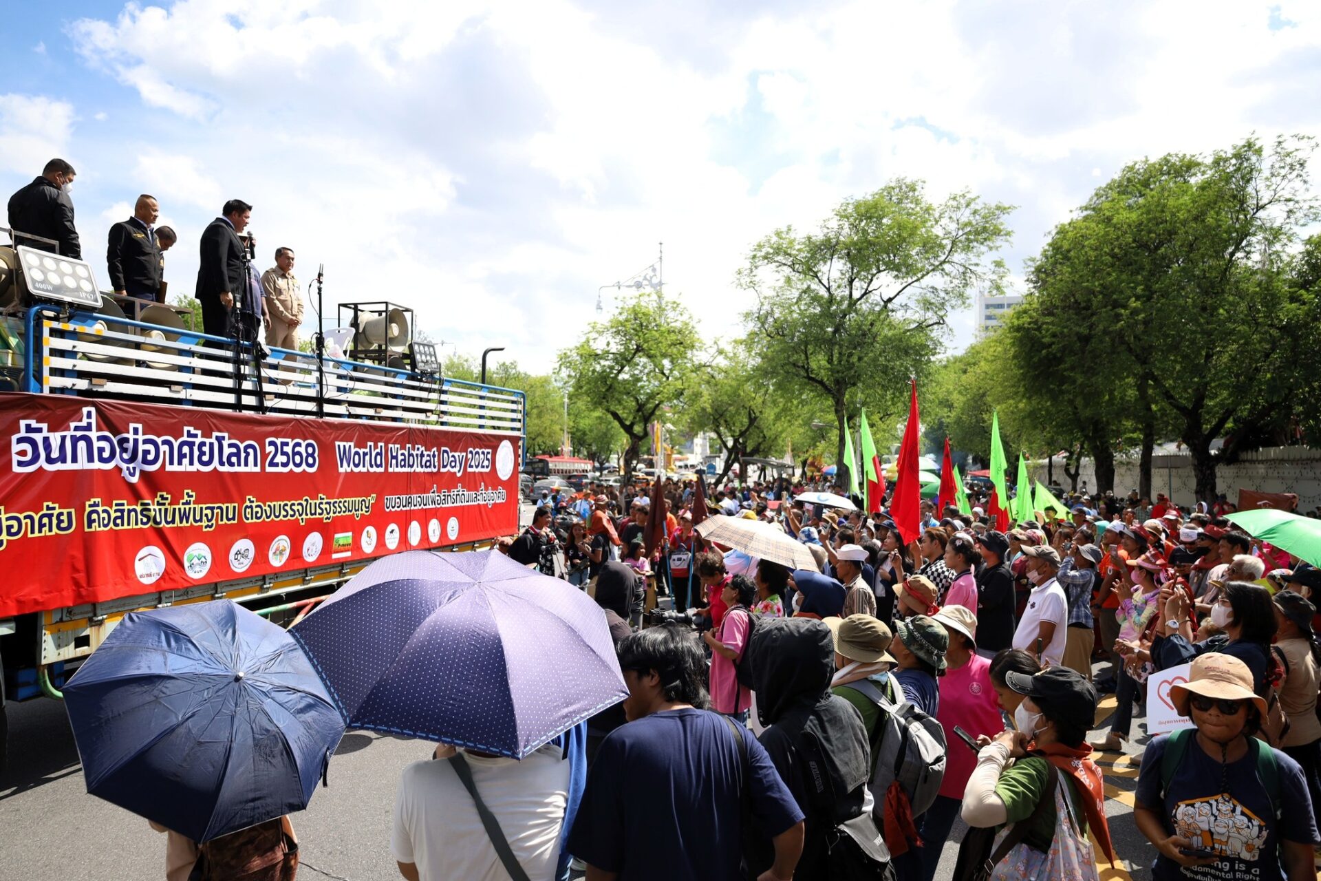 ตามที่องค์การสหประชาชาติ (UN) ได้ประกาศให้ “วันจันทร์แรกของเดือนตุลาคม ของทุกปี ให้เป็นวันที่อยู่อาศัยโลก (World Habitat Day)” เพื่อให้ประชาคมโลกตระหนักถึงความสำคัญต่อสิทธิที่อยู่อาศัย ซึ่งเป็นหนึ่งในปัจจัยสี่ของมนุษย์ที่ขาดมิได้ ในประเทศไทยเองยังมีคนจำนวนมาก ที่ยังไม่มีโอกาสที่จะเข้าถึงที่ อยู่อาศัยที่มั่นคง เนื่องจากปัจจัยสำคัญด้านที่ดินที่มีมูลค่าสูง และรัฐยังไม่มีแนวนโยบายในการจัดการที่ดินในเชิงสิทธิที่ทุกคนต้องเข้าถึงได้ และเนื่องในโอกาสที่วันที่อยู่อาศัยโลก ในปีนี้ตรงกับวันจันทร์ที่ 6 ตุลาคม พ.ศ. 2568 ขบวนคนจนเพื่อสิทธิที่ดินและที่อยู่อาศัย 11 องค์กร ได้แก่ เครือข่ายสลัม4ภาค , เครือข่ายชุมชนคนเมืองผู้ได้รับผลกระทบรถไฟ , เครือข่ายริมรางเมืองย่าโม , ขบวนการประชาชนเพื่อสังคมที่เป็นธรรม , เครือข่ายบ้านมั่นคงชุมชนริมรางรถไฟ , เครือข่ายที่อยู่อาศัยคลองเตย , เครือข่ายภาคประชาสังคม , เครือข่ายพัฒนาที่ดินและที่อยู่อาศัย 5 ภาค , เครือข่ายพัฒนาชุมชนและสิ่งแวดล้อมคูคลอง ขบวนสภาริมรางเมืองขอนแก่น,สมาพันธ์คนไร้บ้านไทย ประชาชนที่เดือดร้อนเรื่องที่ดินและที่อยู่อาศัยทั่วประเทศ กว่า 5,000 คน เริ่มต้นขบวนรณรงค์ ที่หน้าองค์การสหประชาชาติ เพื่อติดตามข้อเสนอ และข้อทักท้วงต่อรัฐบาลในการดำเนินนโยบายที่อยู่อาศัย ที่ได้ยื่นหนังสือต่อรัฐบาลไว้เมื่อวันที่ 23 กันยายน 2568 โดยขบวนคนจนเพื่อสิทธิที่ดินและที่อยู่อาศัย ต้องการให้รัฐบาลตระหนักถึงสถานการณ์ปัญหาที่อยู่อาศัย และไม่ดำเนินนโยบายที่เป็นการซ้ำเติมให้สถานการณ์การเข้าไม่ถึงที่อยู่อาศัย หนักยิ่งขึ้น โดยมีข้อทักท้วง และข้อเสนอแนะต่อรัฐบาลดังต่อไปนี้