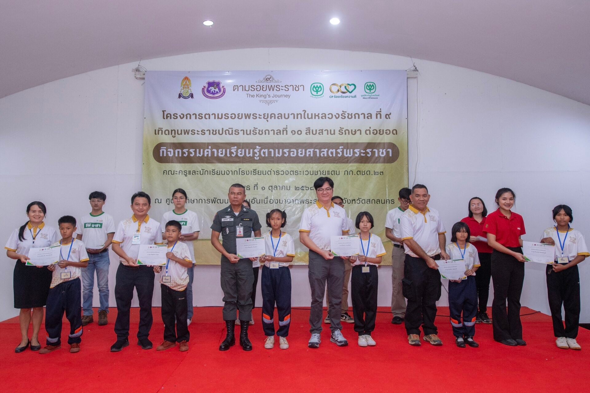 เมื่อวันที่ 1 ตุลาคม 2568 - มูลนิธิเจริญโภคภัณฑ์พัฒนาชีวิตชนบท (ซีพี) ร่วมกับ ศูนย์ศึกษาการพัฒนาภูพาน อันเนื่องมาจากพระราชดำริ จังหวัดสกลนคร จัด "ค่ายเรียนรู้ตามรอยศาสตร์พระราชา" โดยมี พันตำรวจโท ชาติลักษณ์ ดิเรกวัฒนะ รองผู้กำกับการตำรวจตระเวนชายแดนที่ 23 ให้เกียรติเป็นประธานในพิธี พร้อมด้วย นายกฤตยรัฐ ปารมี ผู้ช่วยเลขาธิการมูลนิธิเจริญโภคภัณฑ์พัฒนาชีวิตชนบท เหล่าพนักงาน “ซีพีอาสา” จากกลุ่มธุรกิจในเครือซีพี ได้แก่ บมจ.เจริญโภคภัณฑ์อาหาร (CPF) บมจ.ซีพี แอ็กซ์ตร้า ธุรกิจแม็คโคร (MAKRO) คณะครูและนักเรียนจากโรงเรียนตำรวจตระเวนชายแดน กก.ตชด.23 จำนวน 130 คน เพื่อส่งเสริมการเรียนรู้เชิงปฏิบัติการด้านการเกษตรและนวัตกรรมตามแนวทางพระราชดำริแก่เยาวชนจากโรงเรียนตำรวจตระเวนชายแดน กก.ตชด. 23 ได้สัมผัสและนำหลักการของ "ศาสตร์พระราชา" ไปประยุกต์ใช้ในอนาคต ณ ศูนย์ศึกษาการพัฒนาภูพาน อันเนื่องมาจากพระราชดำริ จ.สกลนคร