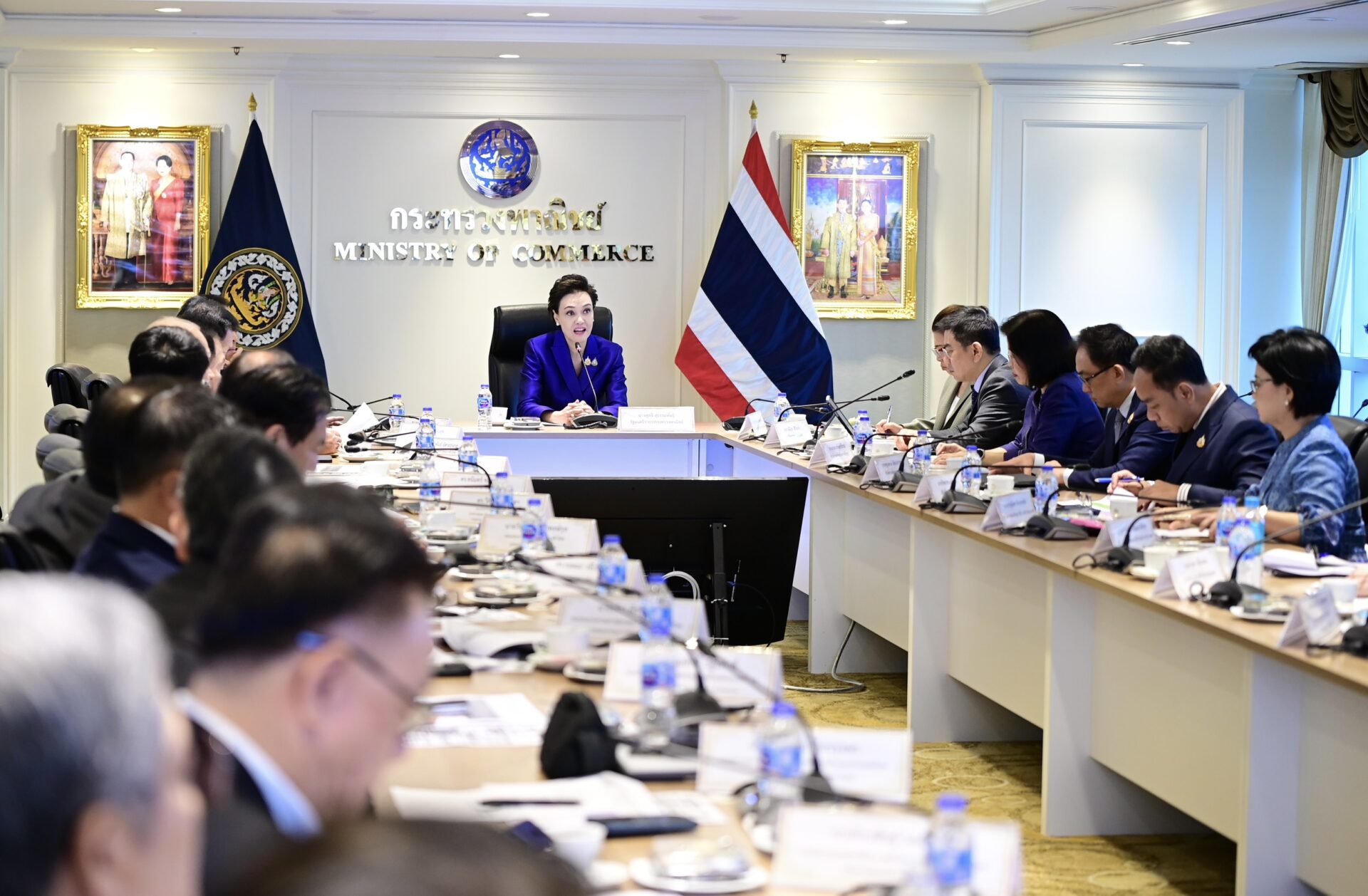วันที่ 9 ตุลาคม 2568 นางศุภจี สุธรรมพันธุ์ รัฐมนตรีว่าการกระทรวงพาณิชย์ พร้อมด้วยนายวุฒิไกร ลีวีระพันธุ์ ปลัดกระทรวงพาณิชย์ และคณะผู้บริหารกระทรวงพาณิชย์ หารือร่วมกับคณะกรรมการสภาหอการค้าแห่งประเทศไทย นำโดย ดร.พจน์ อร่ามวัฒนานนท์ ประธานกรรมการหอการค้าไทย ดร.ชนินทร์ ชลิศราพงศ์ รองประธานกรรมการหอการค้าไทย และผู้แทนภาคเอกชน ณ ห้องกิติยากรวรลักษณ์ ชั้น 4 สำนักงานปลัดกระทรวงพาณิชย์ เพื่อแลกเปลี่ยนแนวทางความร่วมมือในการรับมือกับมาตรการภาษีของสหรัฐอเมริกา (U.S. Tariff) เสริมสร้างความแข็งแกร่งให้ธุรกิจเกษตรของไทย ป้องกันสินค้าสวมสิทธิ์ควบคุมสินค้านำเข้าไม่ได้มาตรฐาน และส่งเสริมการค้ากับตลาดใหม่ รวมทั้งการเตรียมความพร้อมผู้ประกอบการไทยต่อกฎระเบียบการค้าโลกที่เปลี่ยนแปลงอย่างรวดเร็ว และช่วยเหลือผู้ประกอบการในพื้นที่ชายแดนไทย–กัมพูชา