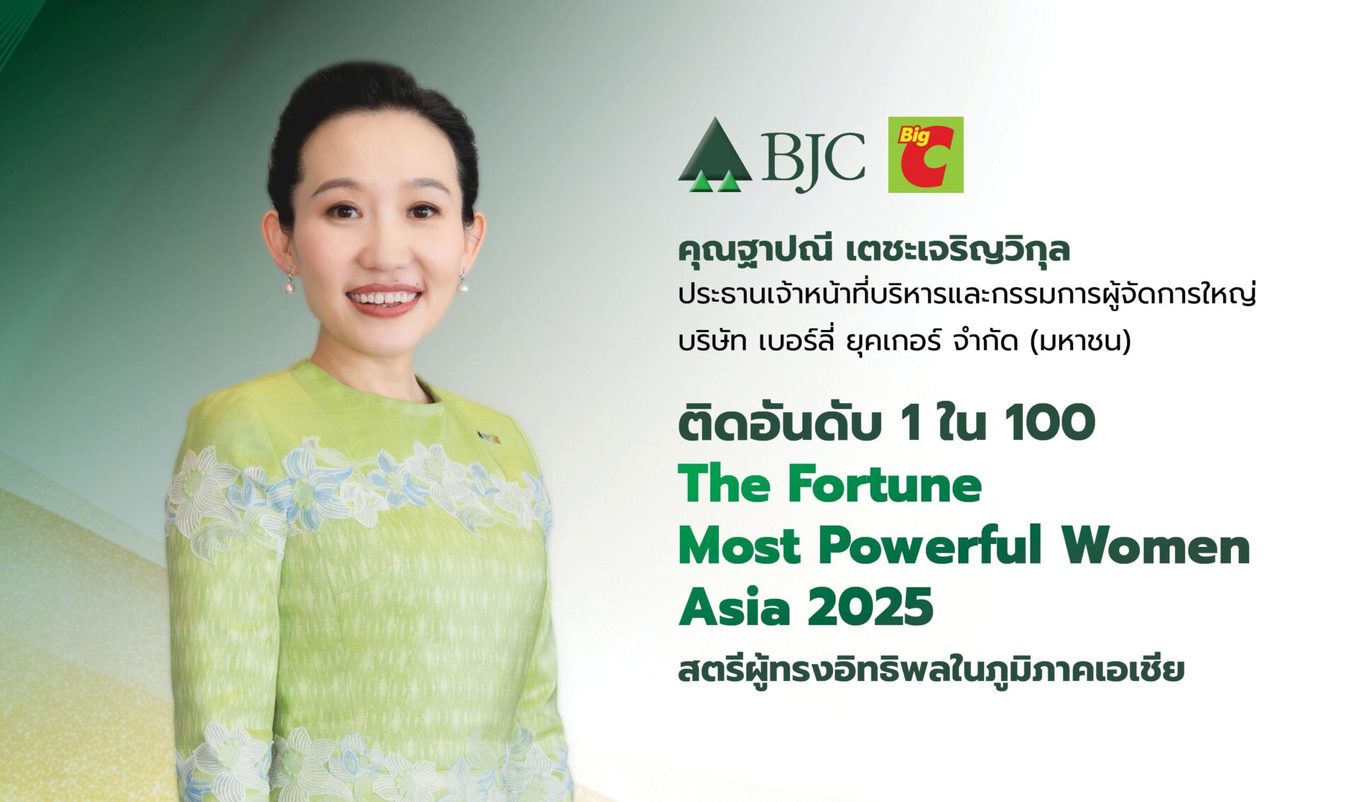 นางฐาปณี เตชะเจริญวิกุล ประธานเจ้าหน้าที่บริหารและกรรมการผู้จัดการใหญ่ บริษัท เบอร์ลี่ ยุคเกอร์ จำกัด (มหาชน) หรือ บีเจซี ผู้นำธุรกิจสินค้าอุปโภคบริโภคครบวงจรของไทย ได้รับการจัดอันดับให้เป็นหนึ่งใน “The Fortune Most Powerful Women Asia 2025” หรือ ผู้นำหญิงผู้ทรงอิทธิพลแห่งภูมิภาคเอเชีย จาก นิตยสารฟอร์จูน (Fortune) สื่อธุรกิจชั้นนำระดับโลก