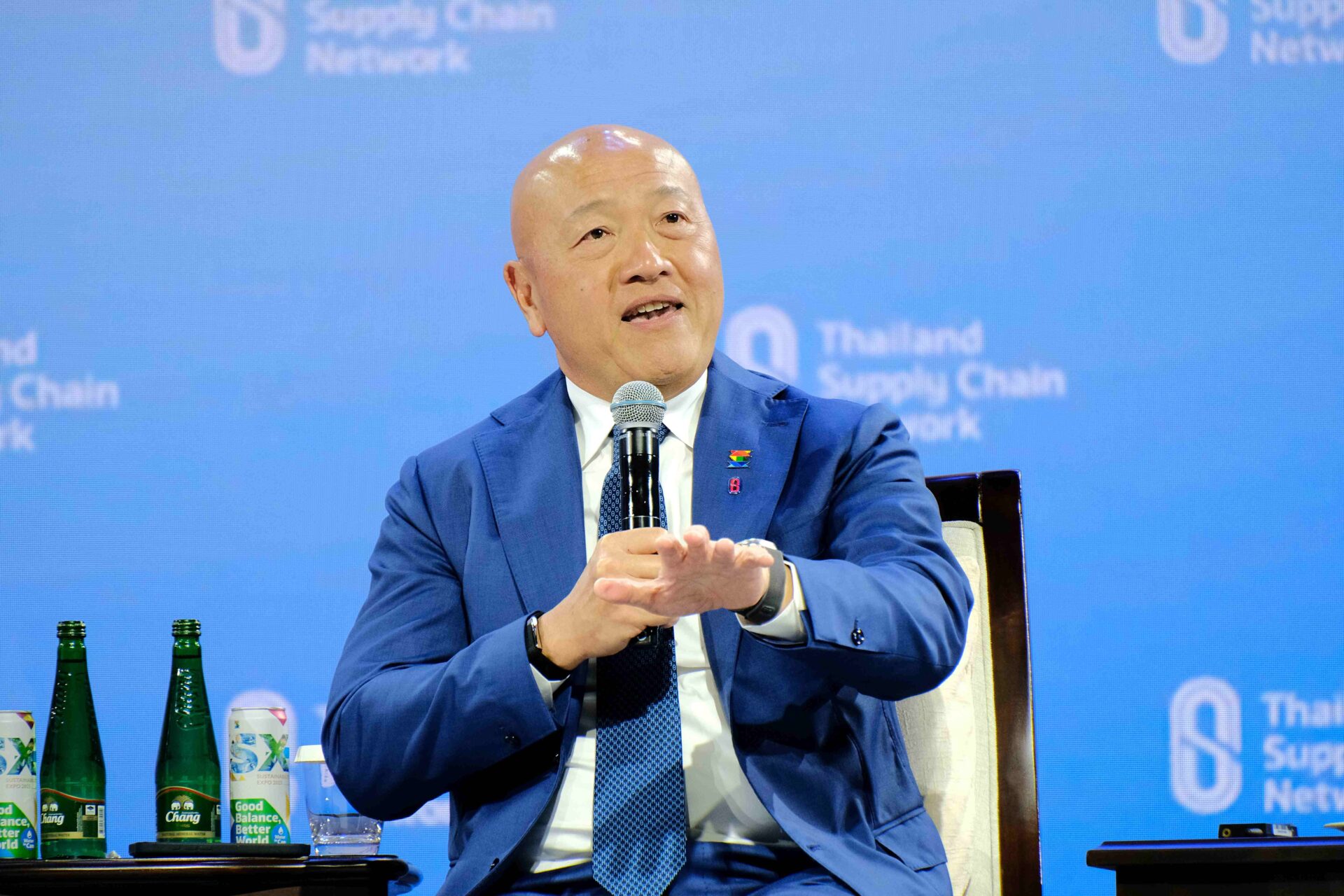 คุณศุภชัย เจียรวนนท์ ประธานคณะผู้บริหาร เครือเจริญโภคภัณฑ์ จำกัด กล่าวว่า “การปรับตัวของสองมหาอำนาจทางเศรษฐกิจโลก คือ สหรัฐอเมริกาและจีน ทำให้ระบบซัพพลายเชนของโลกเปลี่ยนไป และประเทศไทยก็ได้รับผลกระทบโดยตรงอย่างหลีกเลี่ยงไม่ได้ ทั้งการนำเข้า-ส่งออก แต่เราก็มองวิกฤตให้เป็นโอกาสได้ เพราะการที่อเมริกาทวนกระแสโลกาภิวัตน์(Deglobalization) โดยใช้นโยบายคุ้มครองทางการค้า (Protectionism) เพื่อปกป้องอุตสาหกรรมภายในประเทศ ทำให้จีนปรับนโยบายมาเน้นโลกาภิวัฒน์ด้วยการผลักดันทุนออกนอกประเทศ ซึ่งไทยก็ได้อานิสงส์จากการที่บริษัทต่างชาติรวมทั้งจีน ย้ายฐานการผลิตมาลงทุนในนิคมอุตสาหกรรมของไทยมากขึ้น ผู้ประกอบการที่เข้ามาลงทุนล้วนมีเป้าหมายด้านความยั่งยืน หากไทยจะเป็นศูนย์กลางการกระจายทุนสีเขียว หรือ Green Financing ภาครัฐสามารถตั้งกองทุน และสร้างแรงจูงใจให้มีการย้ายฐานการผลิตมามากขึ้น รวมไปถึงช่วยเอสเอ็มอีของไทยให้ปรับตัวไปสู่ธุรกิจสีเขียว เพราะจะต้องลงทุนอัพเกรดโรงงานและสร้างสแตนดาร์ดใหม่ให้สอดคล้องกับอุปสงค์อุปทาน เมื่อเศรษฐกิจโลกเข้าสู่ยุคของเทคโนโลยีและนวัตกรรมแล้ว องค์กรธุรกิจต้องถามตัวเองว่า ปรับตัวทันหรือไม่ มีการสร้างนวัตกรรม วิธีการทำงาน และประยุกต์ใช้เทคโนโลยีใหม่ๆ หรือเปล่า โดยเฉพาะ การเข้าถึง AI ภายในองค์กร และการทำให้โรงงานฉลาดขึ้น ทุกคนรู้ว่า โลกเข้าสู่ยุค Unmanned มากขึ้นเรื่อยๆ ฉะนั้น เราต้องทำงานเชิงรุก และต้องกลับเข้าห้องเรียน (back to school) คือ กลับไปเป็นห้องทดลองเล็กๆ แล้วเปิดโอกาสให้คนรุ่นใหม่ได้ทดลองเรื่องใหม่ๆ ในแล็บอย่างต่อเนื่อง และมีการเชื่อมโยงกับแล็บอื่นๆ ที่เก่งกว่าในด้านต่างๆ ซึ่งจะเป็นตัวเร่งให้เราคล่องตัวและปรับตัวได้เร็วขึ้น