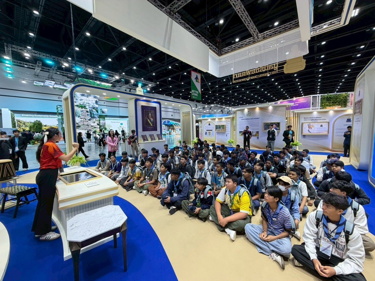 เมื่อวันจันทร์ 3 ตุลาคม 2568 คณะเยาวชน โครงการ “ สานใจไทย สู่ใจใต้” รุ่นที่ 45 จากพื้นที่ 5 จังหวัดชายแดนใต้ จำนวน 320 คน ได้แก่ จังหวัดปัตตานี นราธิวาส สตูล ยะลา และสงขลา ได้เข้าเยี่ยมชมและเรียนรู้ศึกษาแนวทางขับเคลื่อนชุมชน ผ่านนิทรรศการแห่งความยั่งยืน Sustainability Expo 2025 จัดโดย บริษัท ไทยเบฟเวอเรจ จำกัด (มหาชน) ณ ศูนย์การประชุมแห่งชาติสิริกิติ์ เพื่อนำความรู้ที่ได้กลับไปพัฒนาบ้านเกิดตัวเอง ภายในงานน้องๆ ได้พบกับนิทรรศการความยั่งยืนจากหน่วยงานชั้นนำของประเทศ พร้อมเรียนรู้แนวทางการดำเนินการ Repartment Store เพื่อสร้างคุณค่าให้กับ “สิ่งของของนอกสายตา” เพื่อส่งต่อสิ่งของที่เราไม่ได้ใช้แล้ว ส่งต่อผู้ที่ยังต้องการสิ่งของนั้น ทำให้เกิดระบบหมุนเวียนทรัพยากรที่ทรงคุณค่า และก่อให้ประโยชน์กับทุกคนทั้งผู้ให้และผู้รับ ซึ่งสามารถนำของเหล่านั้นกลับมาใช้ประโยชน์ต่อได้ และยังเป็นการลดปริมาณของเหลือทิ้งให้กับโลก อีกทั้งยังได้รับความรู้ ประสบการณ์ และการสร้างแรงบันดาลใจในการเริ่มต้นทำธุรกิจจากนักศึกษา โครงการ Beta Young Entrepreneur มหาวิทยาลัยหอการค้าไทย ที่ได้มาแบ่งปันเรื่องราวการทำธุรกิจตั้งแต่เริ่มต้น ซึ่งในระหว่างทางมีการพัฒนา ปรับปรุง และต่อยอดจนสามารถนำมาเป็นอาชีพได้ เพื่อประโยชน์ให้น้องๆ นำกลับไปประยุกต์ใช้ในพื้นที่ 5 จังหวัดชายแดนใต้อย่างยั่งยืนต่อไป ทั้งนี้ ร.ต.ท.อาทิตย์ บุญญะโสภัต เลขาธิการ มูลนิธิ “สานใจไทย สู่ใจใต้” ได้กล่าวถึงโครงการนี้ ว่า