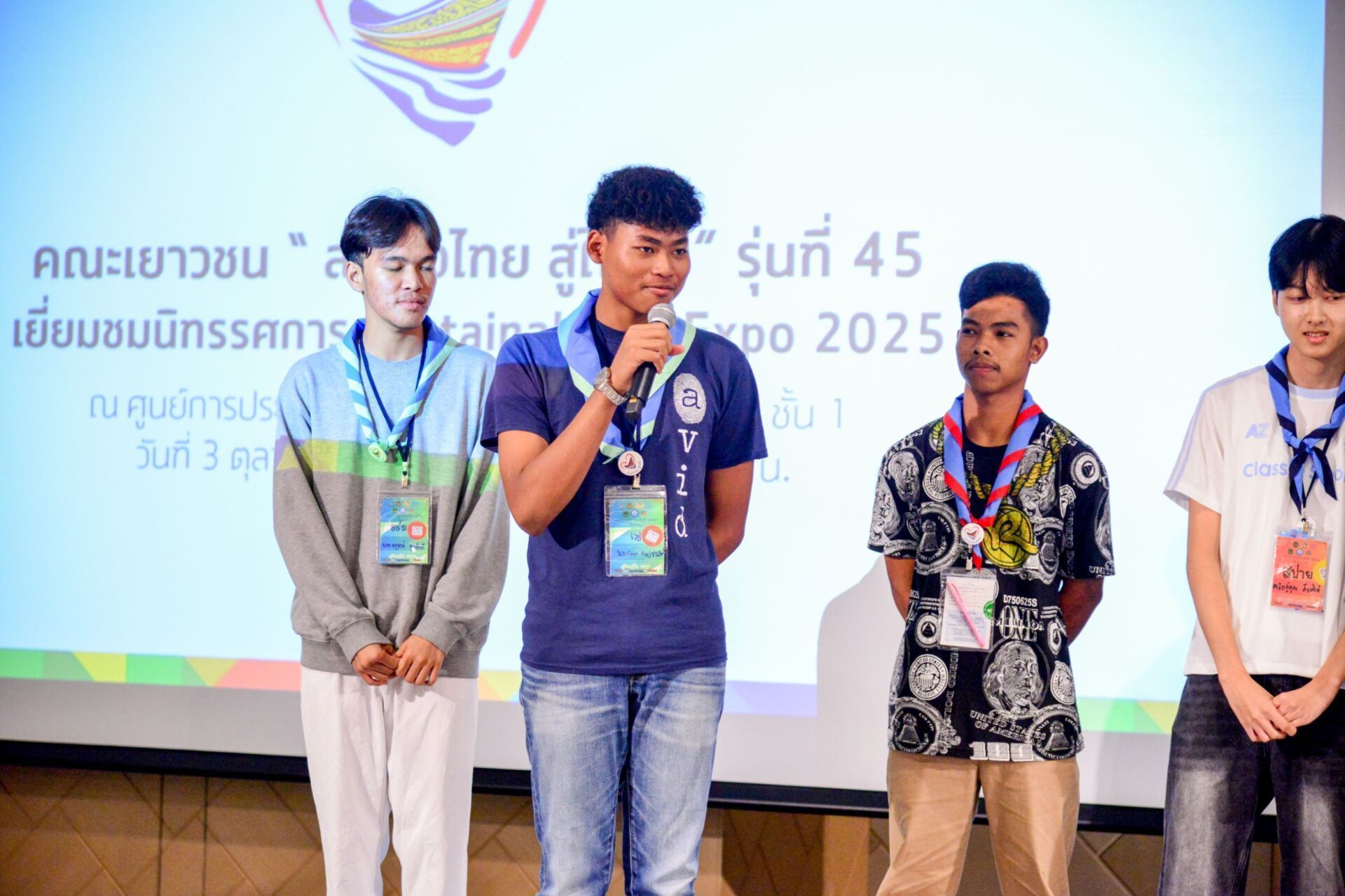 เมื่อวันจันทร์ 3 ตุลาคม 2568 คณะเยาวชน โครงการ “ สานใจไทย สู่ใจใต้” รุ่นที่ 45 จากพื้นที่ 5 จังหวัดชายแดนใต้ จำนวน 320 คน ได้แก่ จังหวัดปัตตานี นราธิวาส สตูล ยะลา และสงขลา ได้เข้าเยี่ยมชมและเรียนรู้ศึกษาแนวทางขับเคลื่อนชุมชน ผ่านนิทรรศการแห่งความยั่งยืน Sustainability Expo 2025 จัดโดย บริษัท ไทยเบฟเวอเรจ จำกัด (มหาชน) ณ ศูนย์การประชุมแห่งชาติสิริกิติ์ เพื่อนำความรู้ที่ได้กลับไปพัฒนาบ้านเกิดตัวเอง ภายในงานน้องๆ ได้พบกับนิทรรศการความยั่งยืนจากหน่วยงานชั้นนำของประเทศ พร้อมเรียนรู้แนวทางการดำเนินการ Repartment Store เพื่อสร้างคุณค่าให้กับ “สิ่งของของนอกสายตา” เพื่อส่งต่อสิ่งของที่เราไม่ได้ใช้แล้ว ส่งต่อผู้ที่ยังต้องการสิ่งของนั้น ทำให้เกิดระบบหมุนเวียนทรัพยากรที่ทรงคุณค่า และก่อให้ประโยชน์กับทุกคนทั้งผู้ให้และผู้รับ ซึ่งสามารถนำของเหล่านั้นกลับมาใช้ประโยชน์ต่อได้ และยังเป็นการลดปริมาณของเหลือทิ้งให้กับโลก อีกทั้งยังได้รับความรู้ ประสบการณ์ และการสร้างแรงบันดาลใจในการเริ่มต้นทำธุรกิจจากนักศึกษา โครงการ Beta Young Entrepreneur มหาวิทยาลัยหอการค้าไทย ที่ได้มาแบ่งปันเรื่องราวการทำธุรกิจตั้งแต่เริ่มต้น ซึ่งในระหว่างทางมีการพัฒนา ปรับปรุง และต่อยอดจนสามารถนำมาเป็นอาชีพได้ เพื่อประโยชน์ให้น้องๆ นำกลับไปประยุกต์ใช้ในพื้นที่ 5 จังหวัดชายแดนใต้อย่างยั่งยืนต่อไป ทั้งนี้ ร.ต.ท.อาทิตย์ บุญญะโสภัต เลขาธิการ มูลนิธิ “สานใจไทย สู่ใจใต้” ได้กล่าวถึงโครงการนี้ ว่า