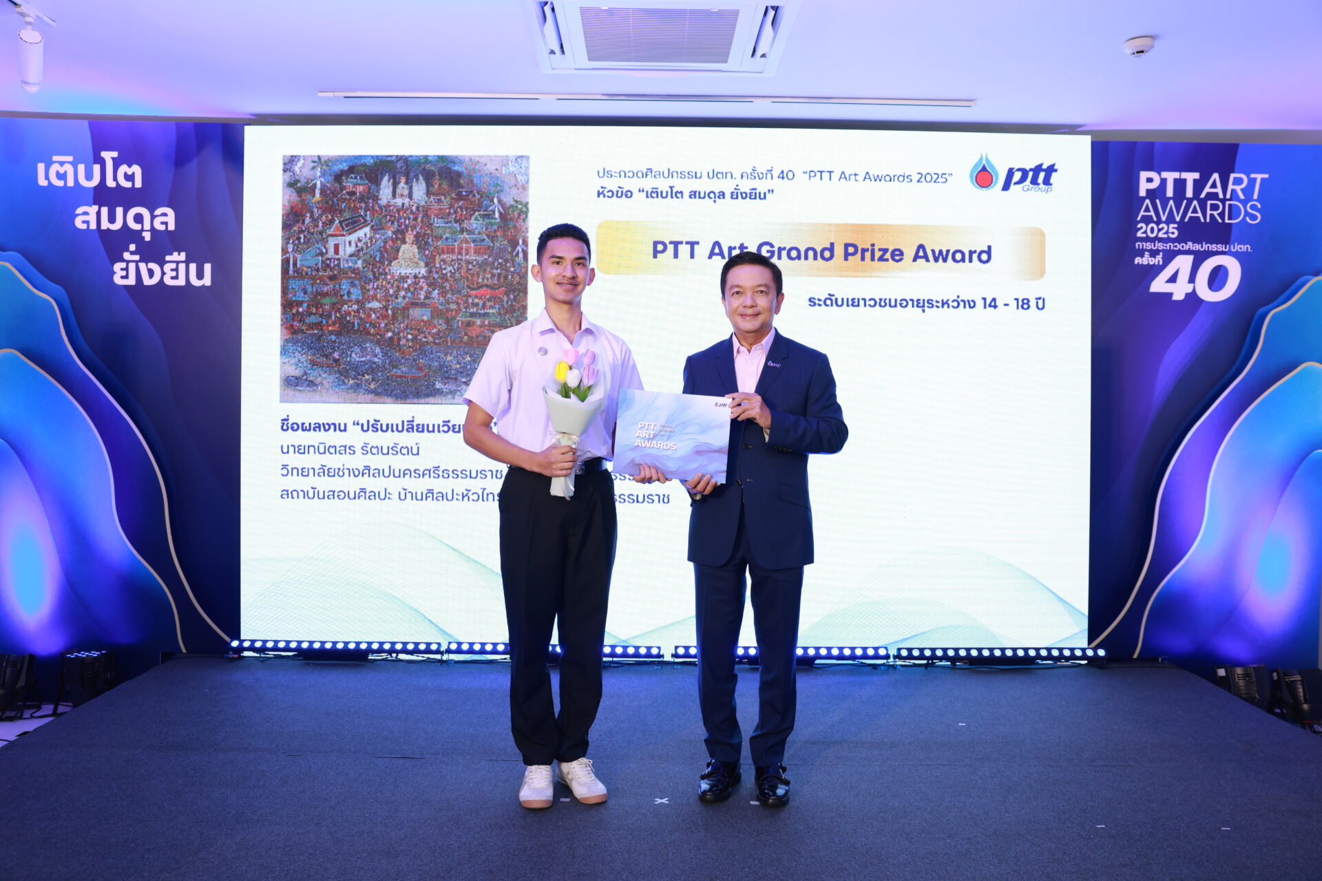 โดยเมื่อเร็วๆ นี้ ดร.คงกระพัน อินทรแจ้ง ประธานเจ้าหน้าที่บริหารและกรรมการผู้จัดการใหญ่ ปตท. ได้เป็นประธานในพิธีมอบรางวัลแก่ผู้ชนะทั้ง 40 ท่าน พร้อมกล่าวแสดงความยินดีและขอบคุณผู้สร้างสรรค์ผลงานทุกท่านที่ร่วมสร้างคุณค่าให้กับเวทีนี้ และขอเป็นกำลังใจให้ทุกคนกล้าที่จะก้าวออกมานำเสนอผลงาน เพื่อพัฒนาตนเองและวงการศิลปะไทยอย่างต่อเนื่อง