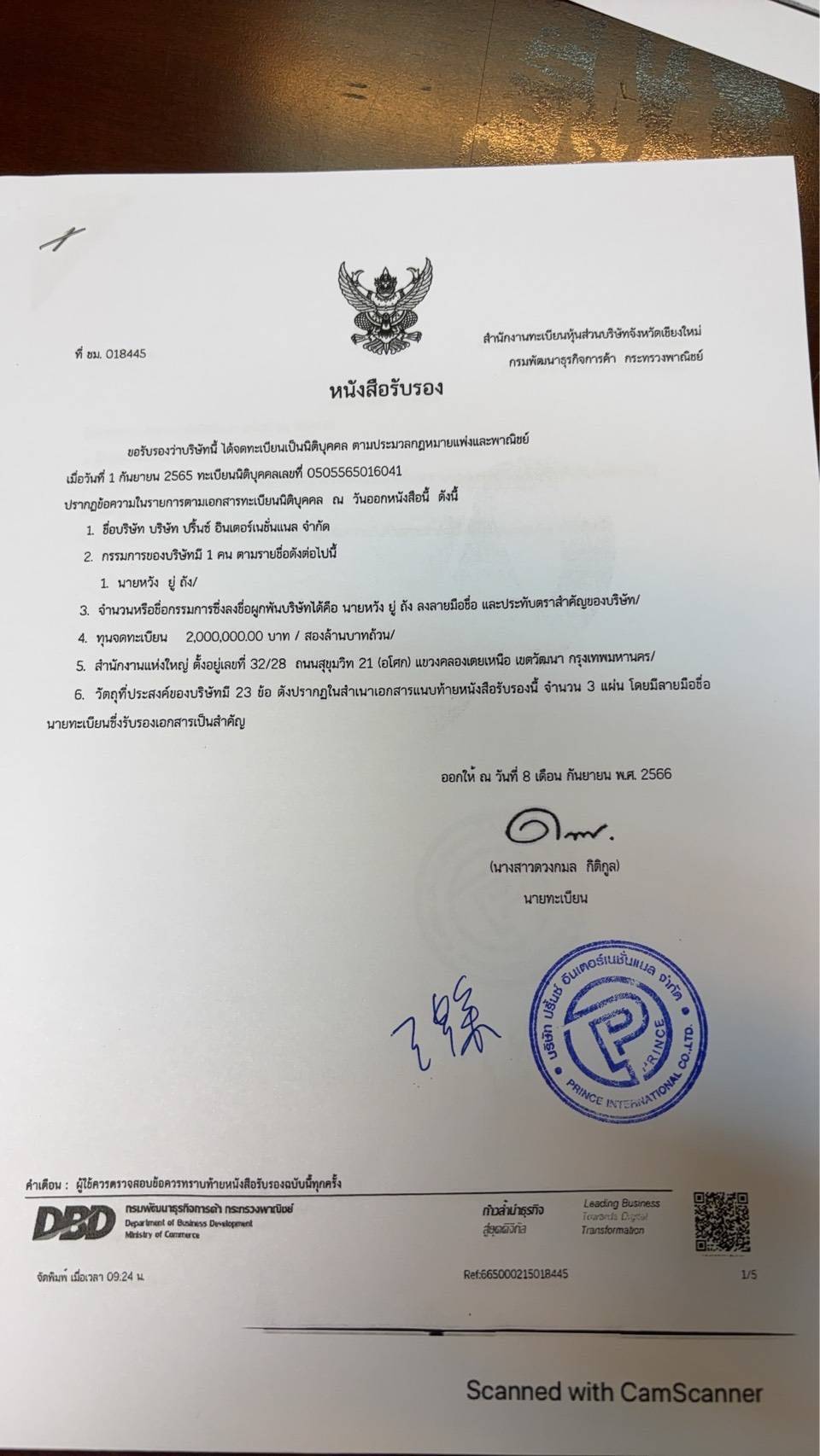 จากกรณีที่นายศุภณัฐ มีนชัยนันท์ ส.ส.กทม. พรรคประชาชน โพสต์ข้อความในเฟซบุ๊ก ระบุข้อมูลจากเว็บไซต์กรมพัฒนาธุรกิจการค้าและเว็บไซต์บริษัท ว่าตรงกัน คือ บริษัท ปริ้นซ์ อินเตอร์เนชั่นแนล จำกัด (Prince International) ตั้งอยู่ที่อาคารอาคารซิโน-ไทยทาวเวอร์ ( Sino-Thai Tower )
