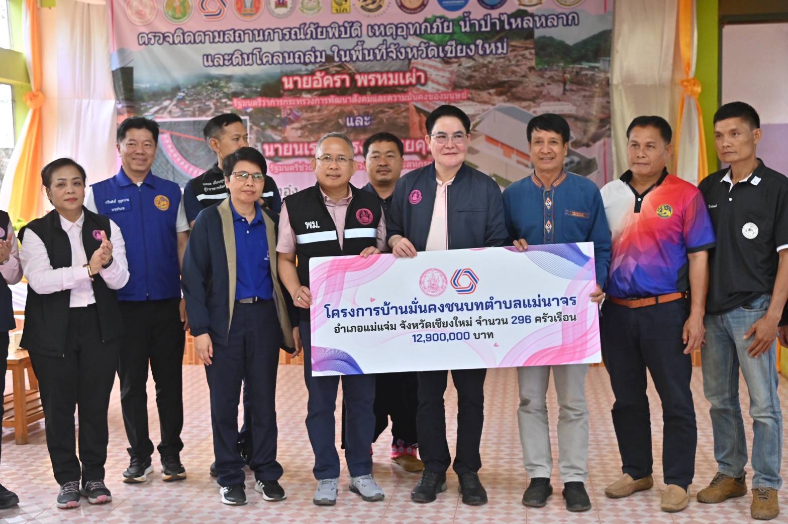 วันที่ 17 ตุลาคม 2568 นายอัครา พรหมเผ่า รัฐมนตรีว่าการกระทรวงการพัฒนาสังคมและความมั่นคงของมนุษย์ (รมว.พม.) และนายนเรศ ธำรงค์ทิพยคุณ รัฐมนตรีช่วยว่าการกระทรวงเกษตรและสหกรณ์ (รมช.กษ.) พร้อมด้วยนายกันตพงศ์ รังษีสว่าง ปลัดกระทรวงการพัฒนาสังคมและความมั่นคงของมนุษย์ (ปลัด พม.) นายทศพล เผื่อนอุดม ผู้ว่าราชการจังหวัดเชียงใหม่ คณะผู้บริหารกระทรวง พม. ทีม พม.ใกล้คุณ เชียงใหม่ และผู้แทนหน่วยงานที่เกี่ยวข้องลงพื้นที่ ณ บ้านปางอุ๋ง ต.แม่ศึก อ.แม่แจ่ม จ.เชียงใหม่ เพื่อตรวจเยี่ยมและติดตามสถานการณ์ภัยพิบัติ เหตุอุทกภัย น้ำป่าไหลหลาก และดินโคลนถล่ม พร้อมให้การช่วยเหลือและฟื้นฟูผู้ประสบภัย และการสร้างความมั่นคงในที่ดินและที่อยู่อาศัย ภายใต้โครงการบ้านมั่นคงชนบท ตามยุทธศาสตร์แม่แจ่มโมเดล โดยสถาบันพัฒนาองค์กรชุมชน (องค์การมหาชน) หรือ พอช. กระทรวง พม. อีกทั้งให้ความช่วยเหลือกลุ่มเปราะบางที่ได้รับผลกระทบจากภัยพิบัติ โดยมอบเงินสงเคราะห์ผู้ประสบปัญหาทางสังคม , งบประมาณซ่อมสร้างที่อยู่อาศัยตามโครงการบ้านมั่นคงชนบทภัยพิบัติ , ถุงยังชีพ เครื่องอุปโภคบริโภคที่จำเป็น นอกจากนี้ มีการปล่อยขบวนช่างชุมชนเพื่อไปซ่อมสร้างที่อยู่อาศัยให้ผู้ประสบภัยในชุมชนที่ได้รับความเสียหาย