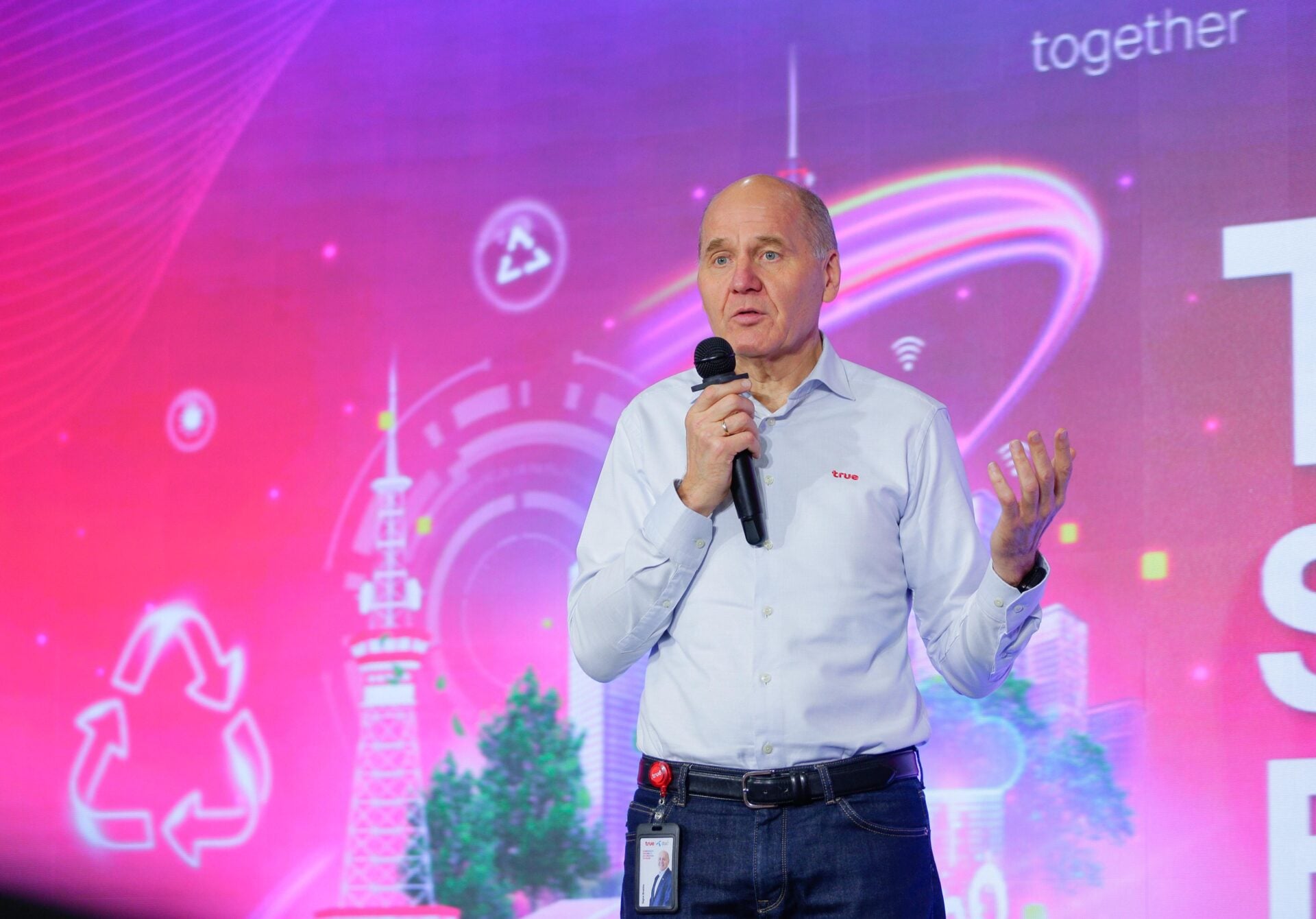 นายซิกเว่ เบรกเก้ ประธานคณะผู้บริหารกลุ่ม บมจ. ทรู คอร์ปอเรชั่น กล่าวว่า “ทรู คอร์ปอเรชั่น มุ่งมั่นขับเคลื่อนความยั่งยืนในทุกมิติของ ESG ทั้งด้านสิ่งแวดล้อม สังคม และธรรมาภิบาล โดยเรามองว่า ‘การเติบโตอย่างยั่งยืน’ ต้องเกิดขึ้นจากความร่วมมือของทุกภาคส่วนในห่วงโซ่อุปทาน ไม่ว่าจะเป็นการร่วมลดการปล่อยคาร์บอนผ่านโครงการ ‘Green Financing Program’ ที่ช่วยให้คู่ค้าพันธมิตรสามารถเข้าถึงแหล่งเงินทุนสีเขียวเพื่อปรับเปลี่ยนธุรกิจสู่ความยั่งยืนได้ง่ายขึ้น หรือการยกระดับมาตรฐานด้านสุขภาพและความปลอดภัยในการทำงาน ซึ่งเป็นรากฐานสำคัญของการดำเนินธุรกิจอย่างมีความรับผิดชอบ และสิ่งที่ผมให้ความสำคัญที่สุดคือ ‘ความปลอดภัยของคนทำงาน’ เพราะเบื้องหลังเครือข่ายที่แข็งแกร่งของทรู คือการทำงานอย่างทุ่มเทของผู้คนมากมายในภาคสนาม เราจึงตั้งเป้าหมาย ‘Zero Fatalities’ หรือการไม่มีการสูญเสียชีวิตจากการทำงานแม้แต่รายเดียว พร้อมยกระดับมาตรฐานสุขภาพและความปลอดภัยตลอดห่วงโซ่อุปทานอย่างจริงจัง เพื่อให้ทุกคนปลอดภัยในทุกวัน ซึ่งเป็นหัวใจสำคัญของการเติบโตอย่างยั่งยืนที่ทรูตั้งใจเดินไปพร้อมกับพันธมิตรทุกคน”